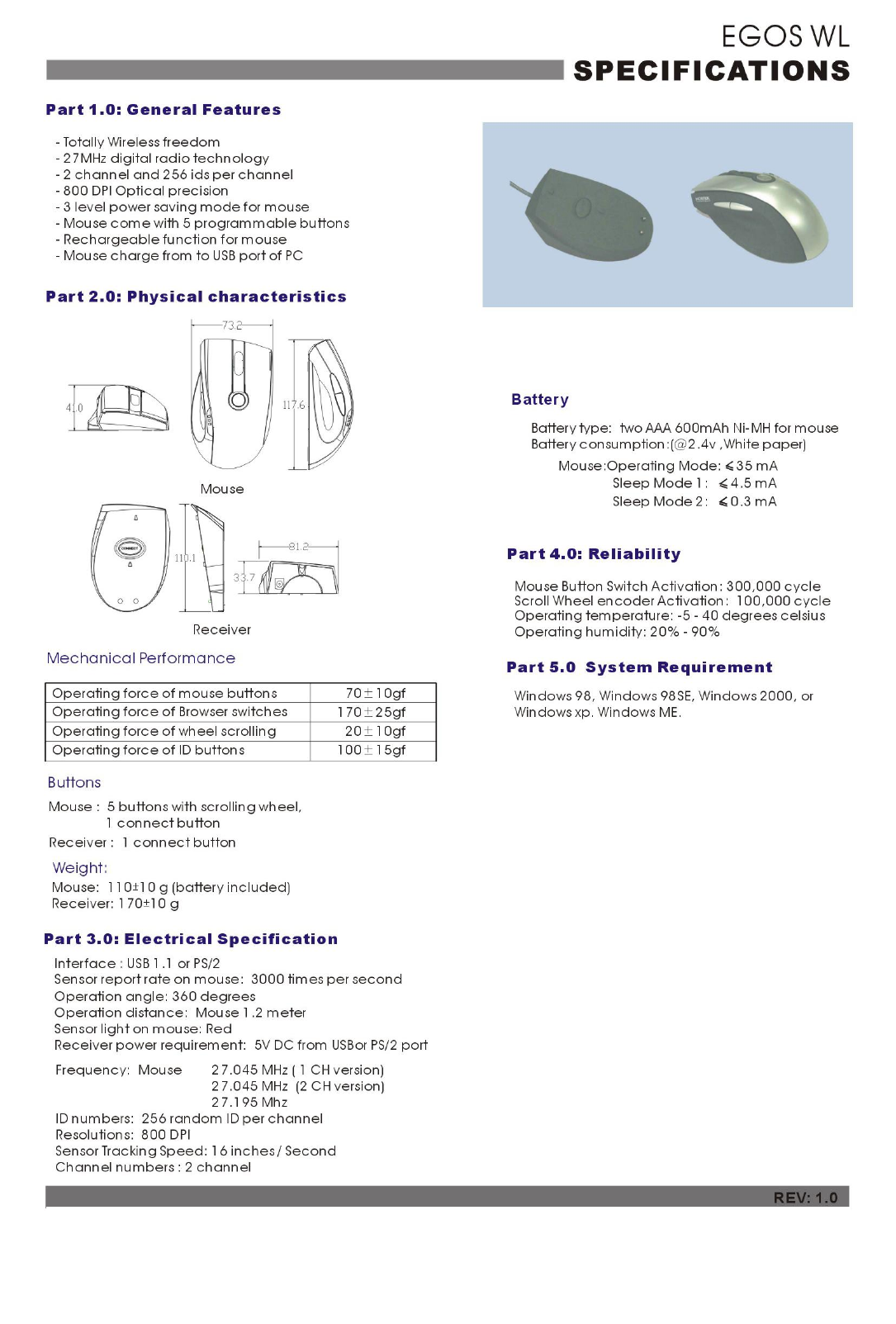 NORTEK EGOSWL WIRELESS OPTICAL MOUSE User Manual