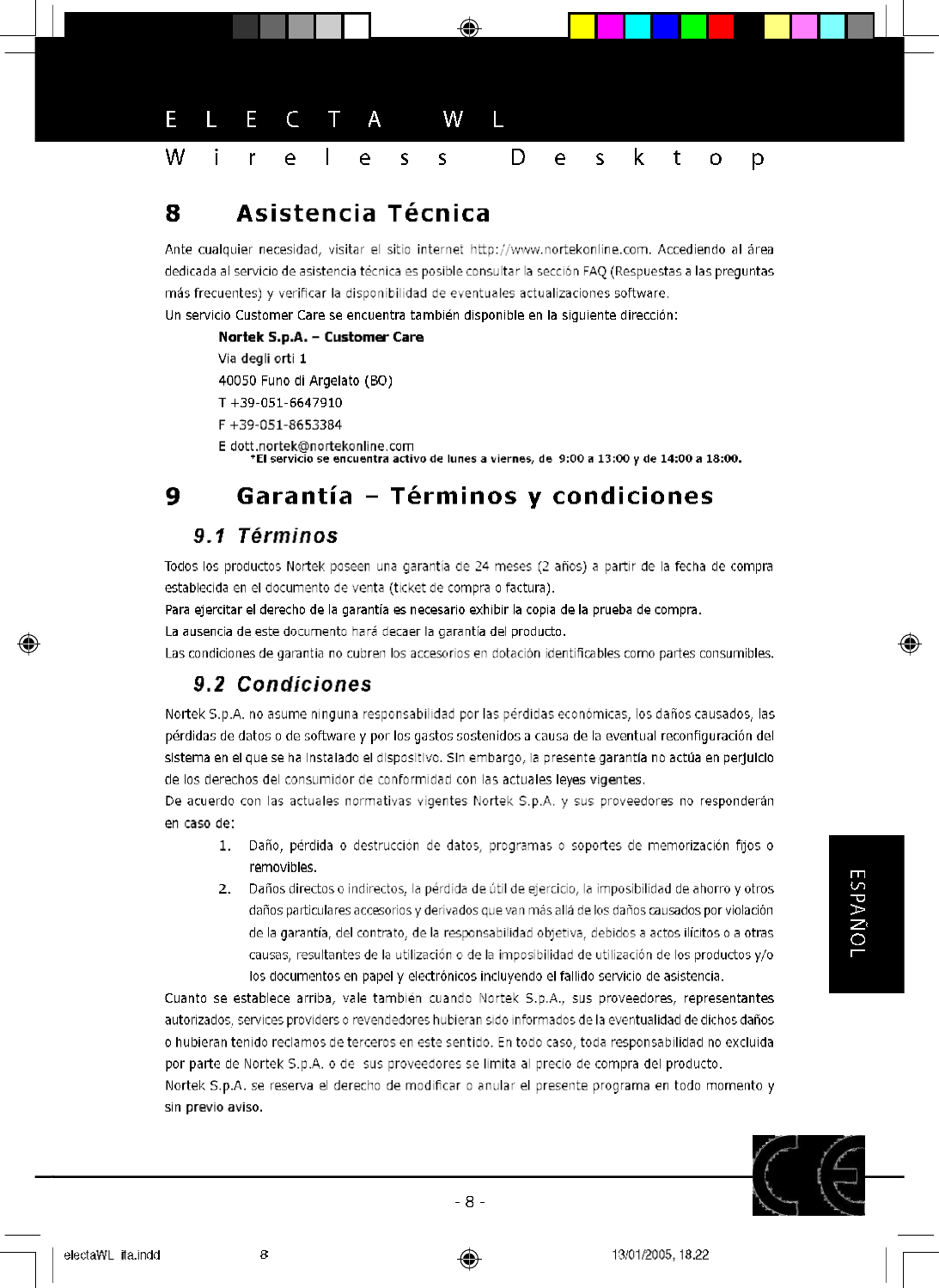 NORTEK ELECTAWL WIRELESS KEYBOARD User Manual