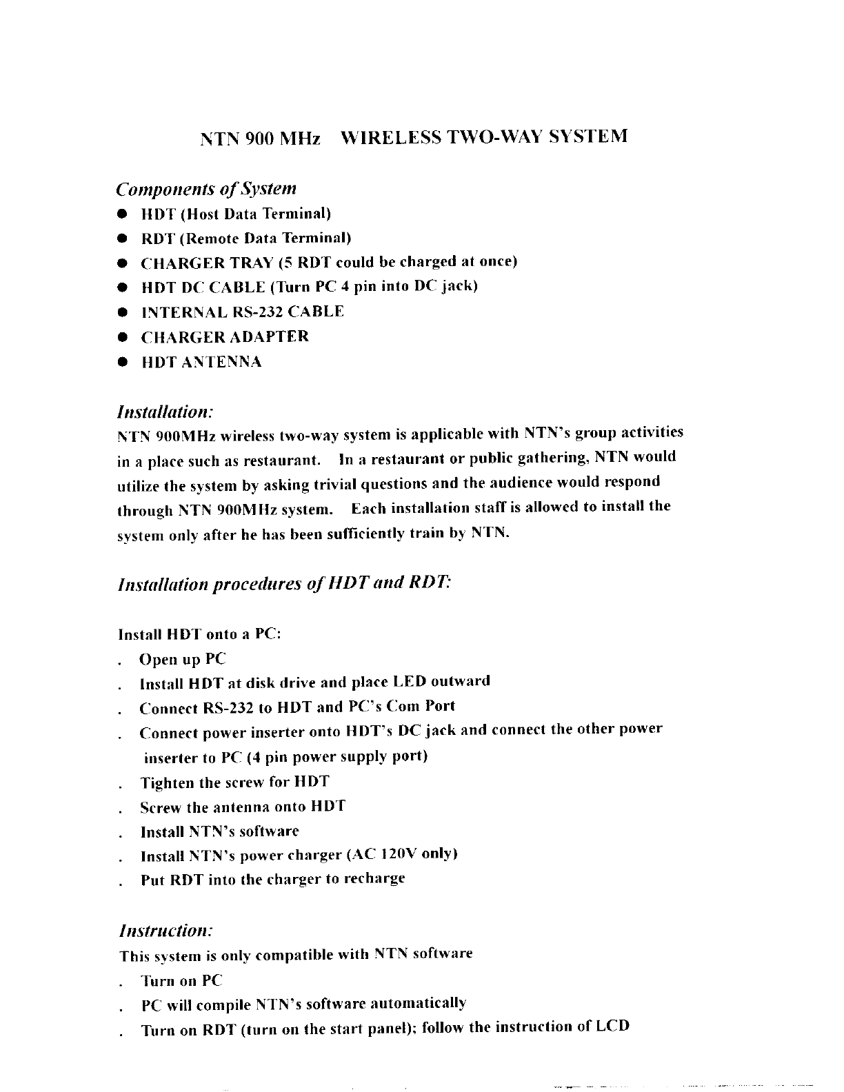 NTN Buzztime NTN900R Data Transmitter User Manual 51587