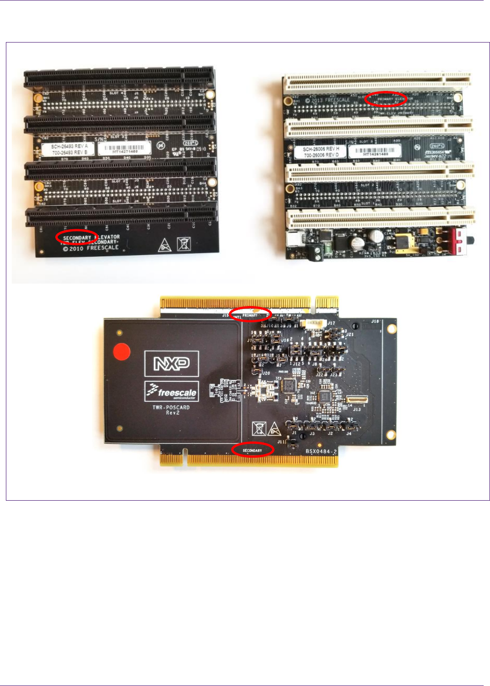 respected. PCI secondary and primary connector are identified on TWR-POSCARD, and