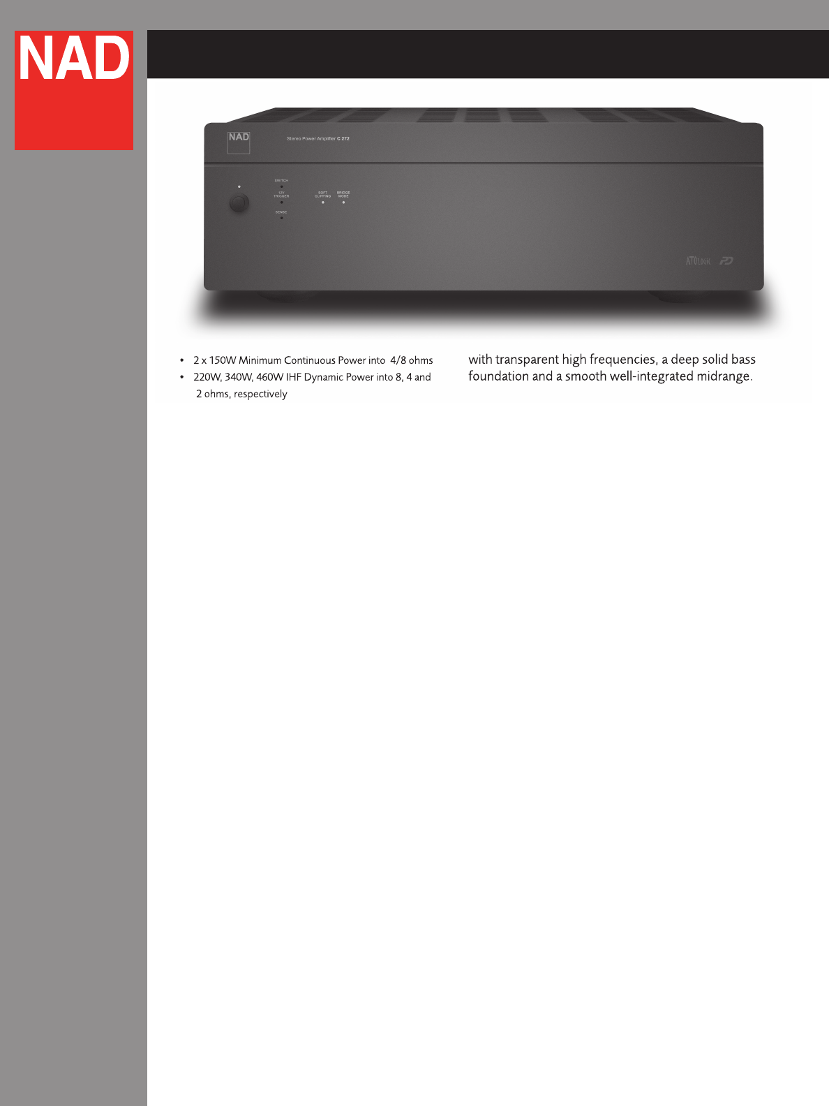The C 272 also benefi ts from NAD’s proprietary