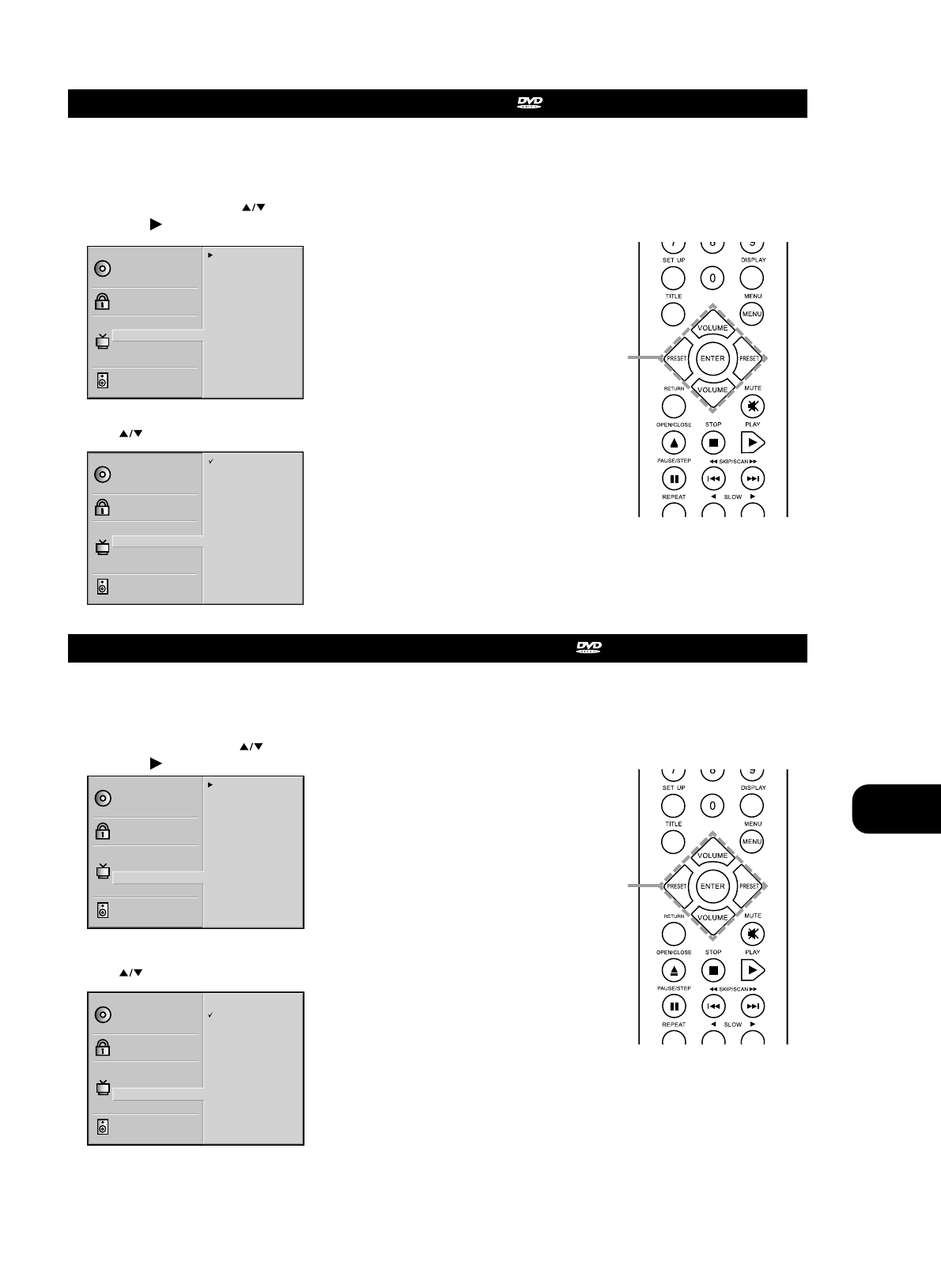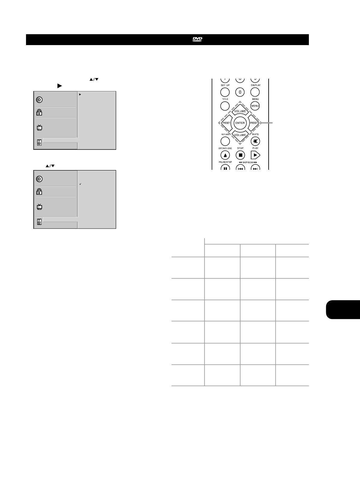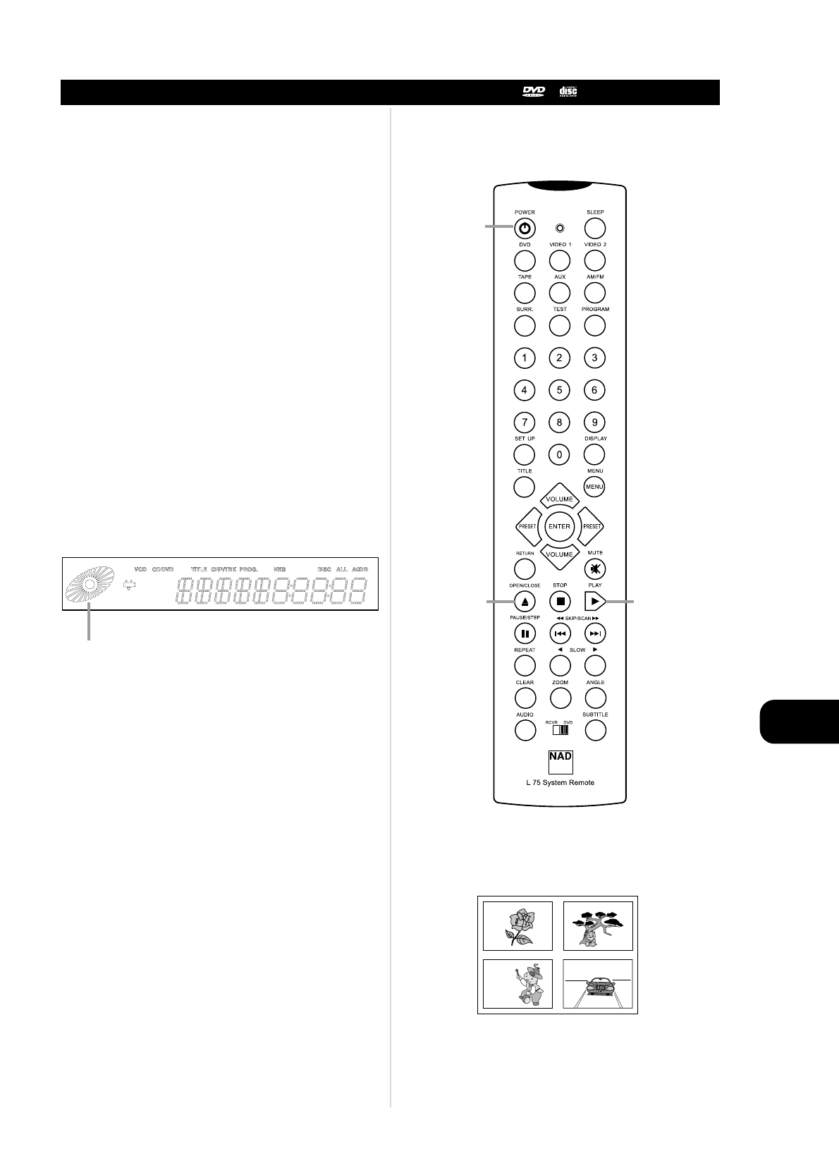 The DVD player does not start playback • No disc is inserted. • Insert a disc (Check that the DVD, or audio