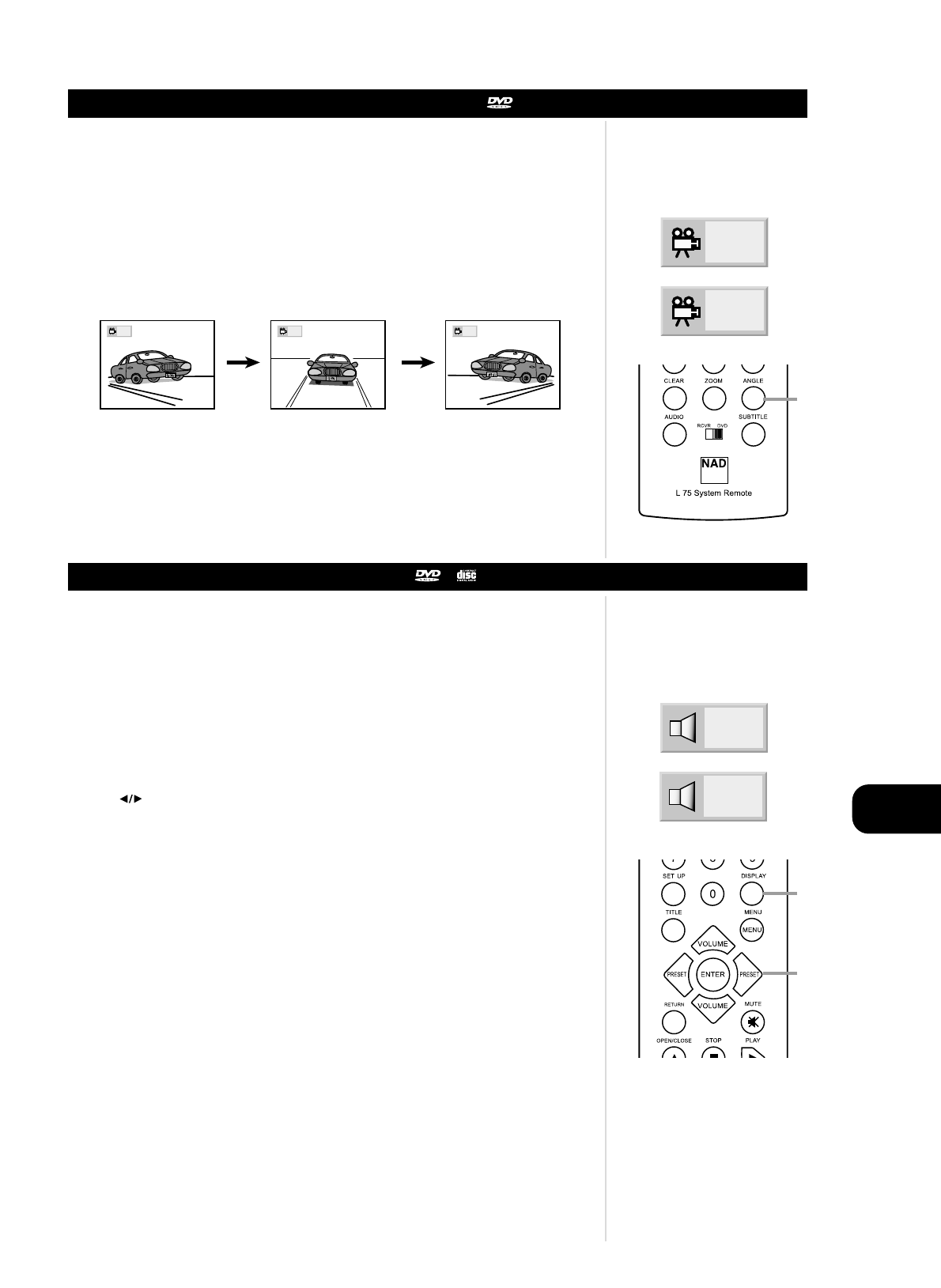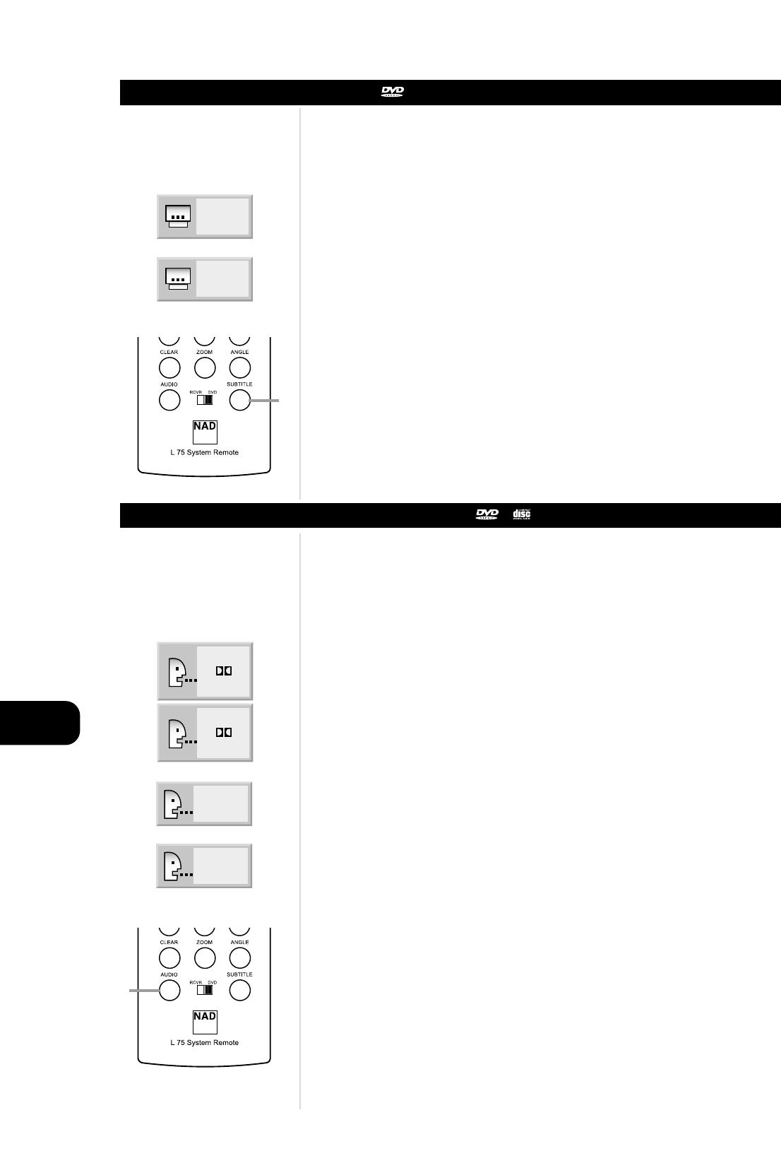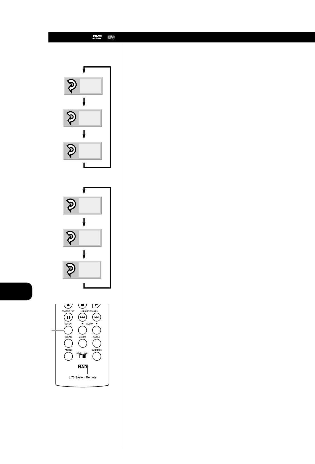 • No disc is inserted. • Insert a disc (Check that the DVD or, audio