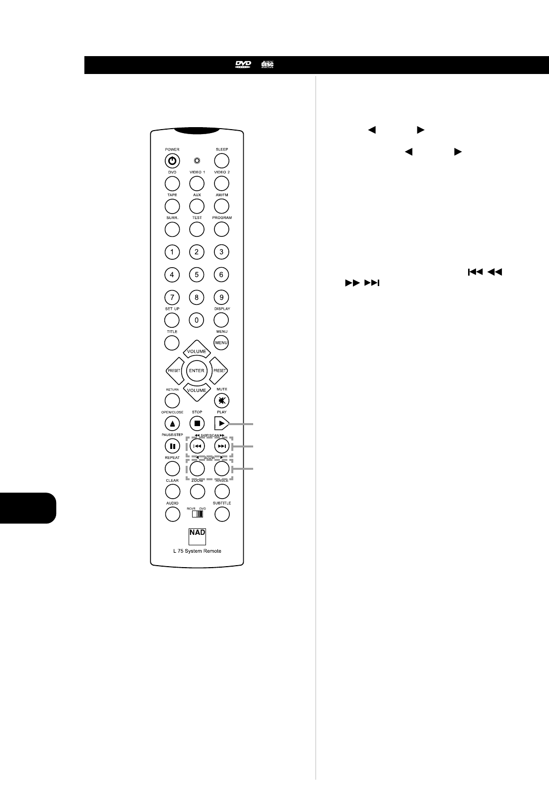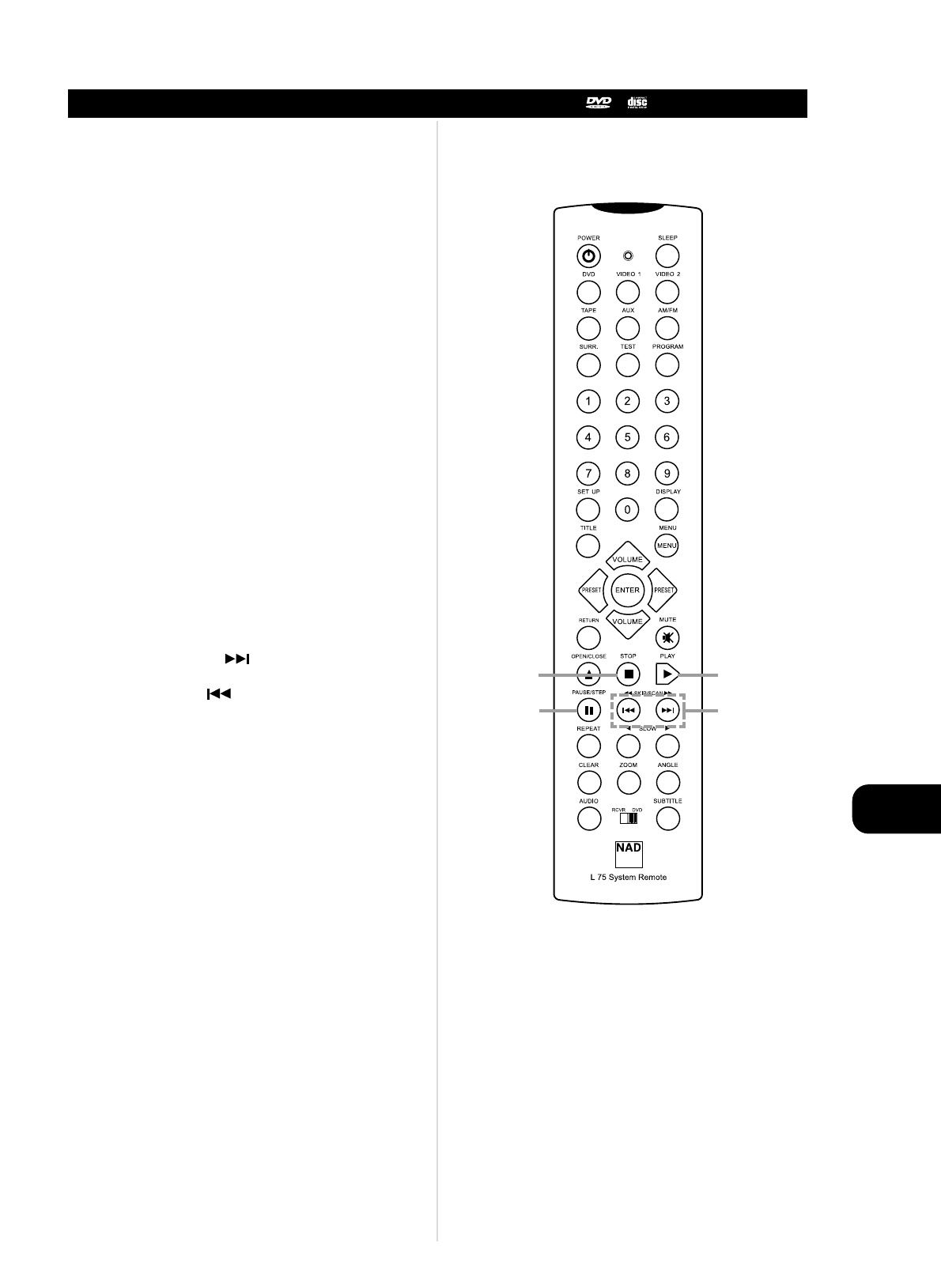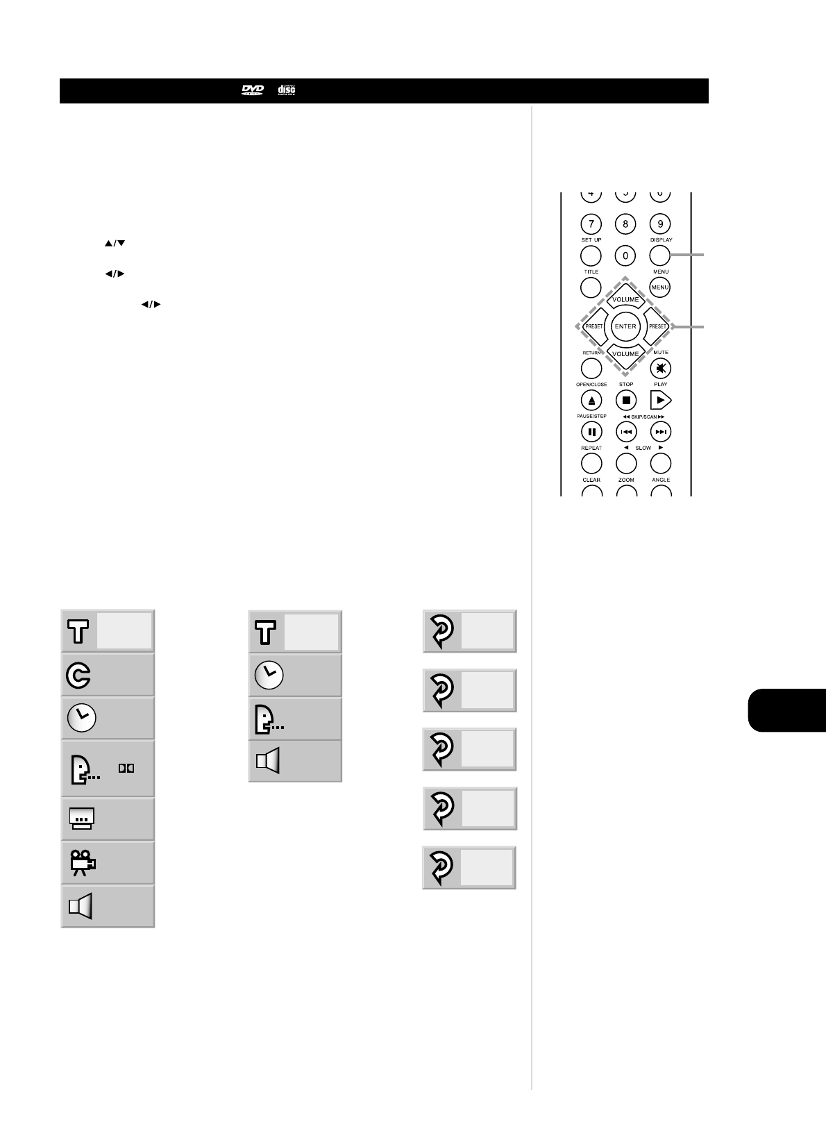 • No disc is inserted. • Insert a disc (Check that the DVD or, audio