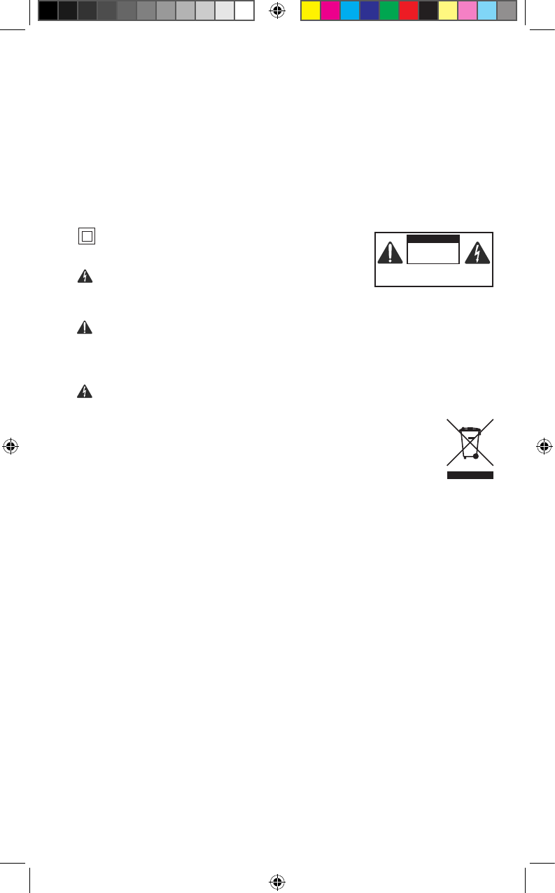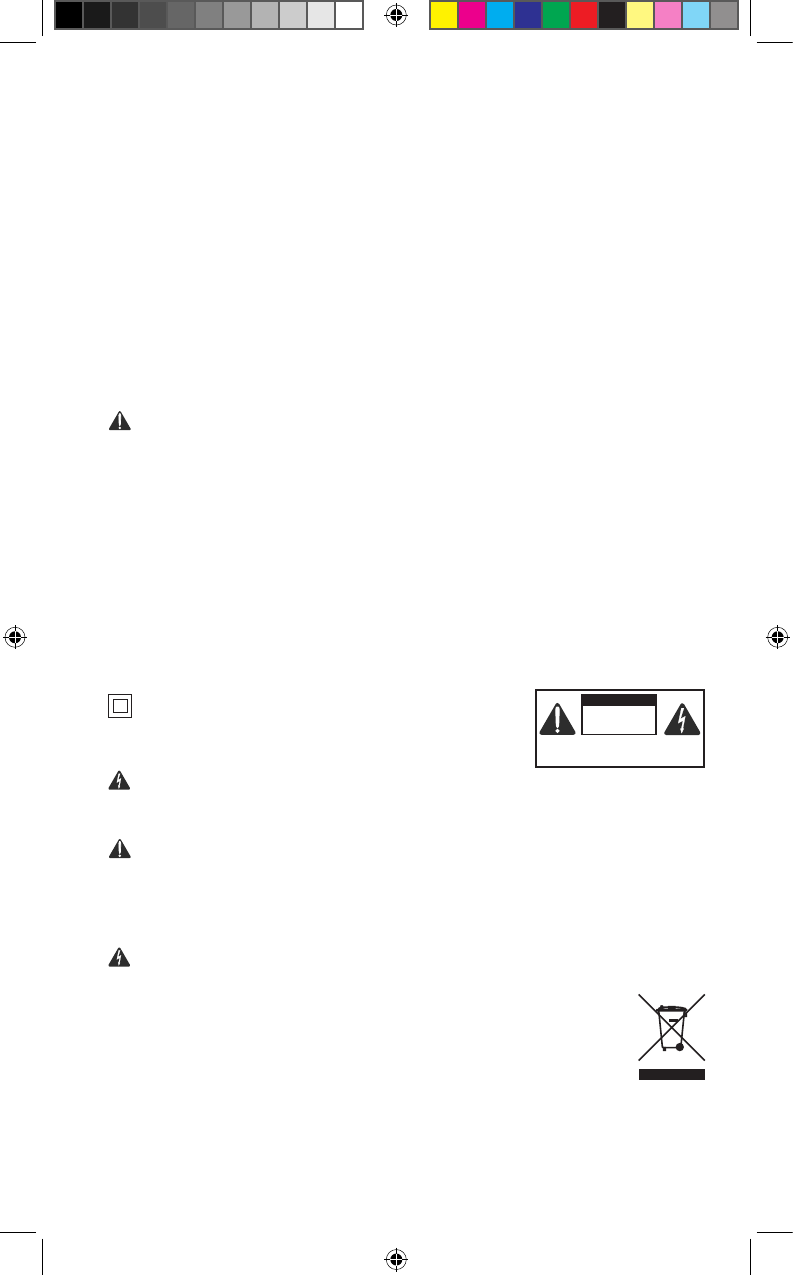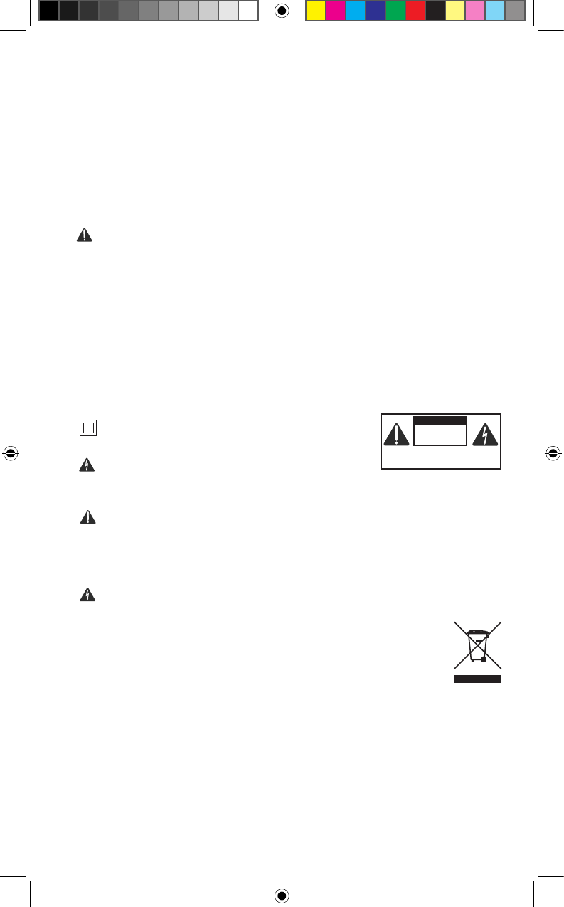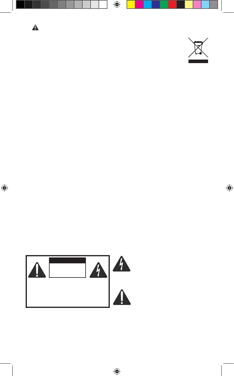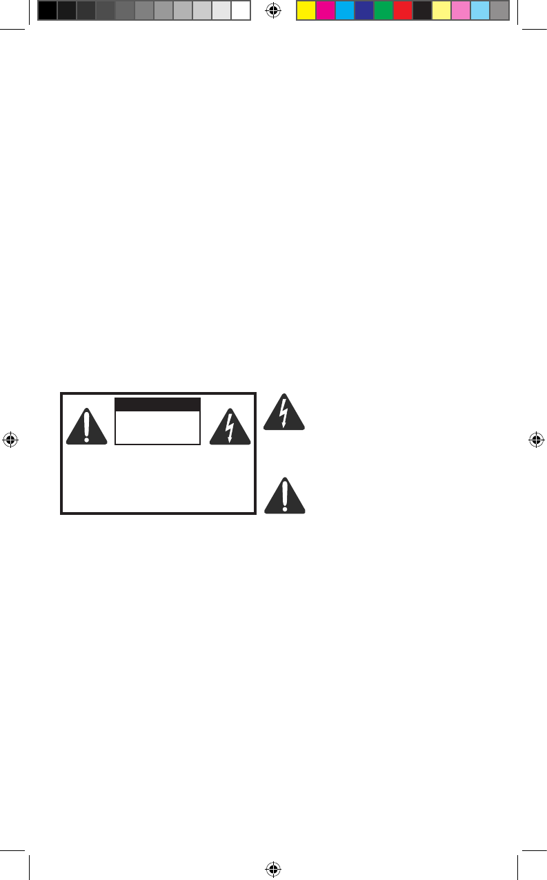 risk of electric shock, do not perform any servicing other than that contained in the operating