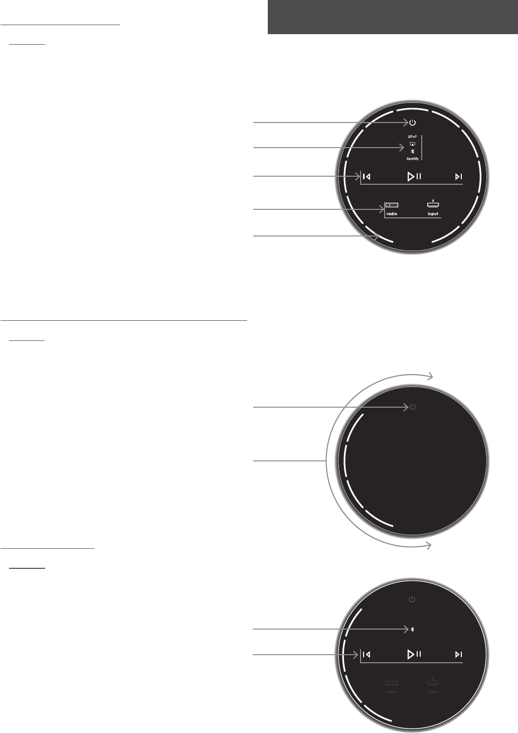 - Abbildung 11 Tippen Sie das Standby-Symbol an, um die Mu-so ein- bzw. auszuschalten. Drehen Sie den Drehregler, um die Lautstärke zu verändern.