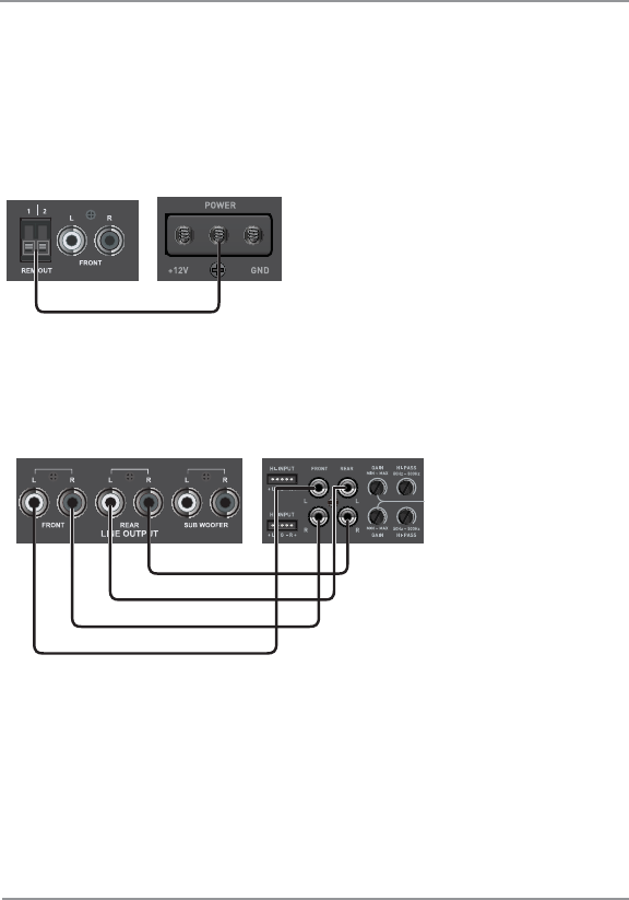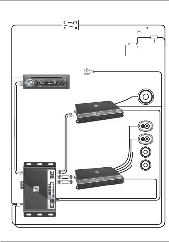 Smart EQ’s output signals(RCA) connect to the amplifier’s low level inputs(RCA).