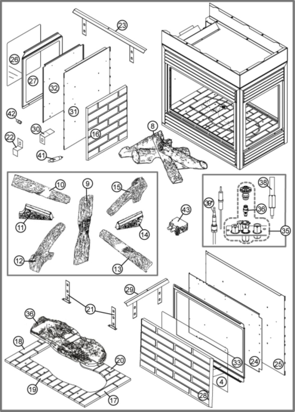 • It is imperative that the control compartments, burners and circulating blower and its passageway in the fireplace