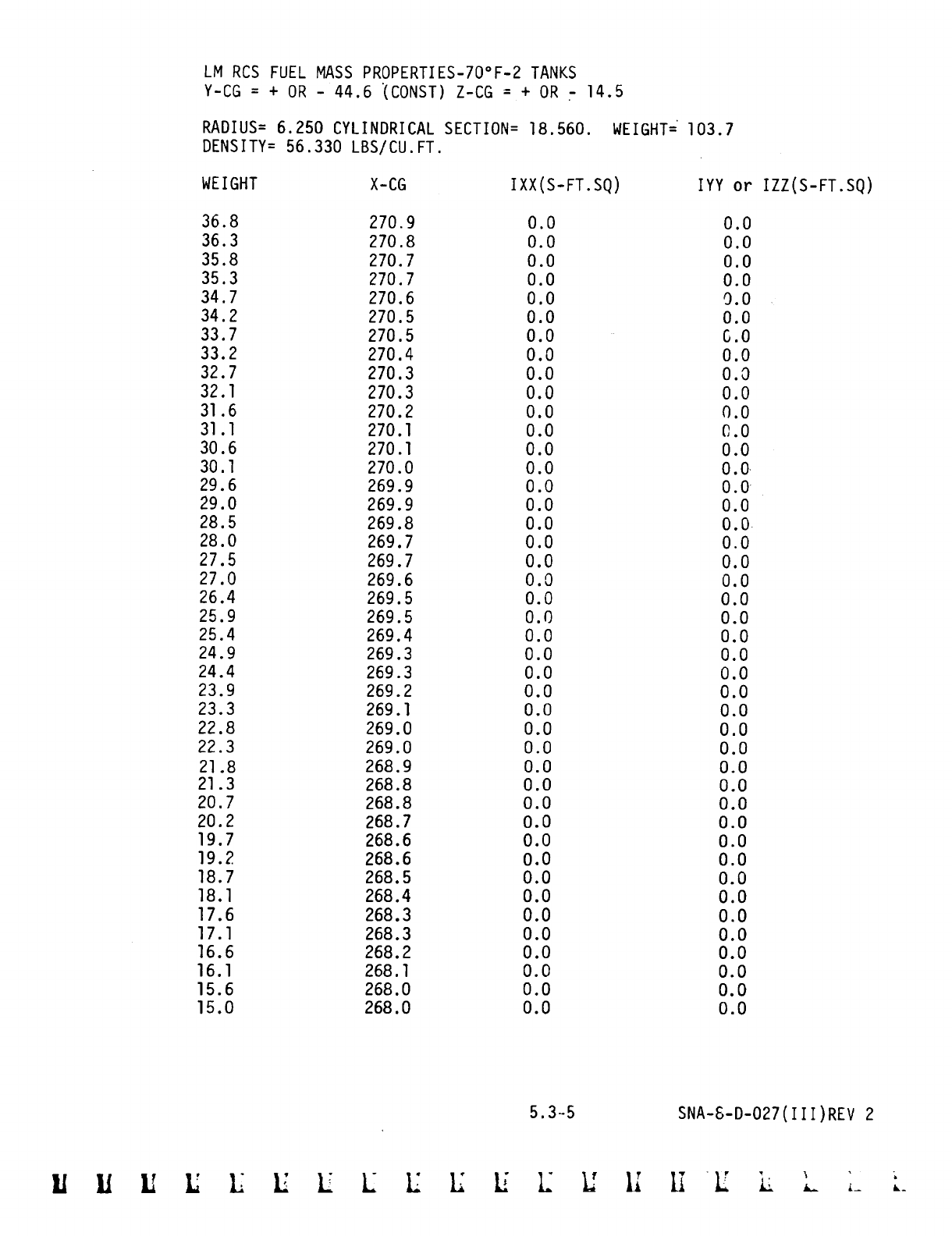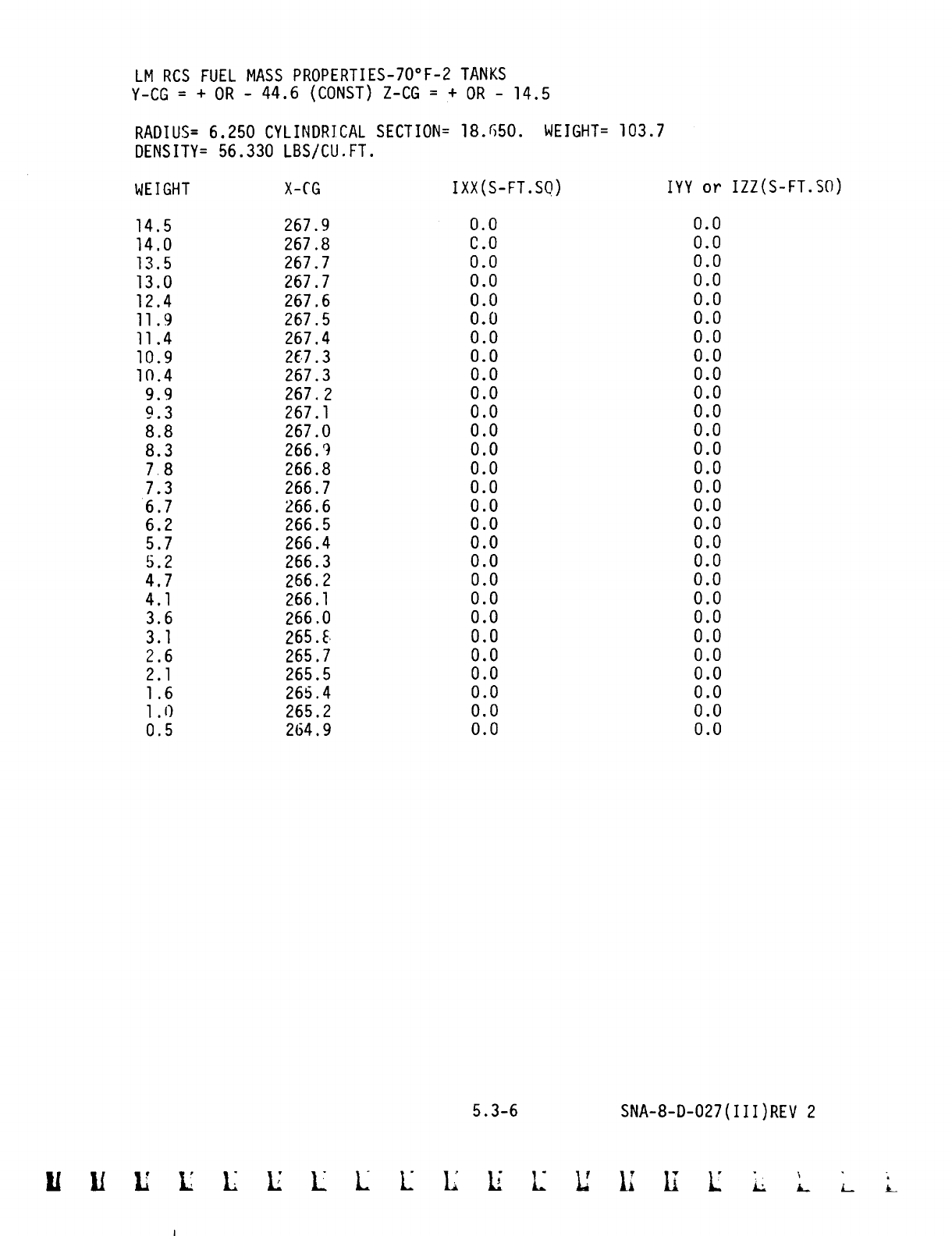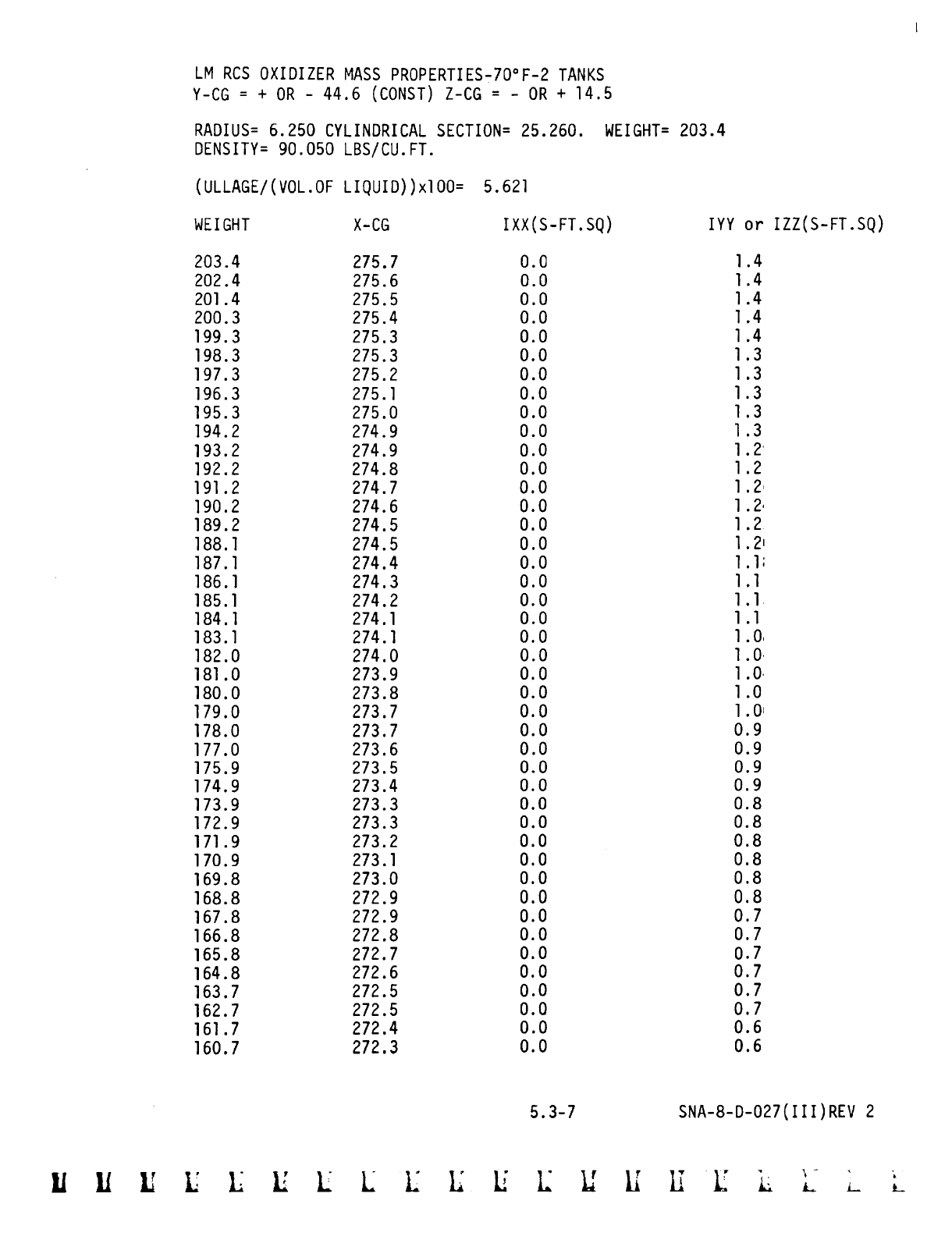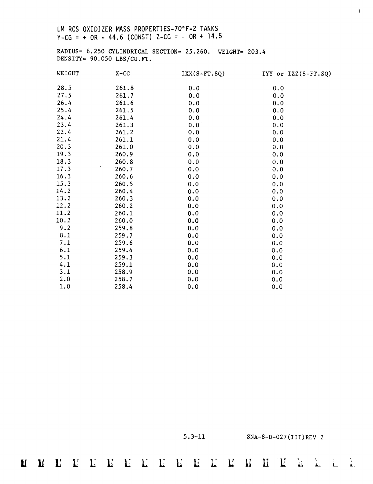 RCS -Tank #I 1.05 263.0 46.1 0.6