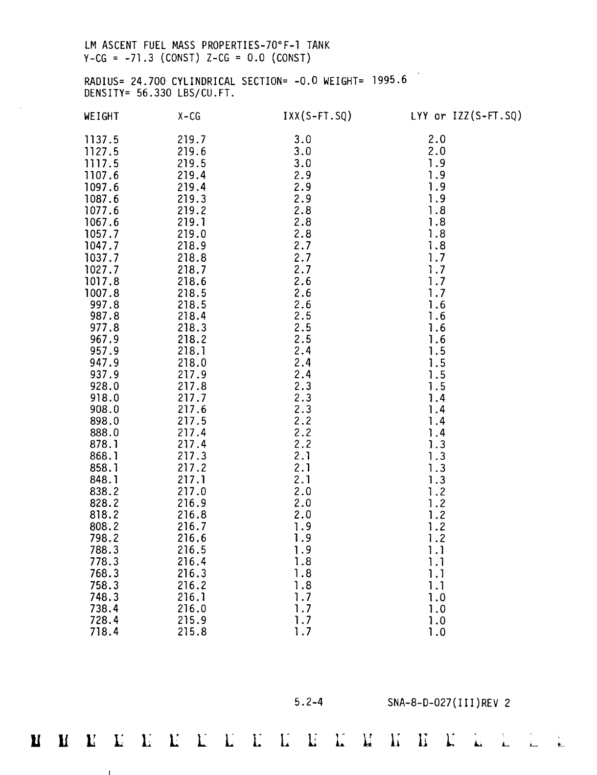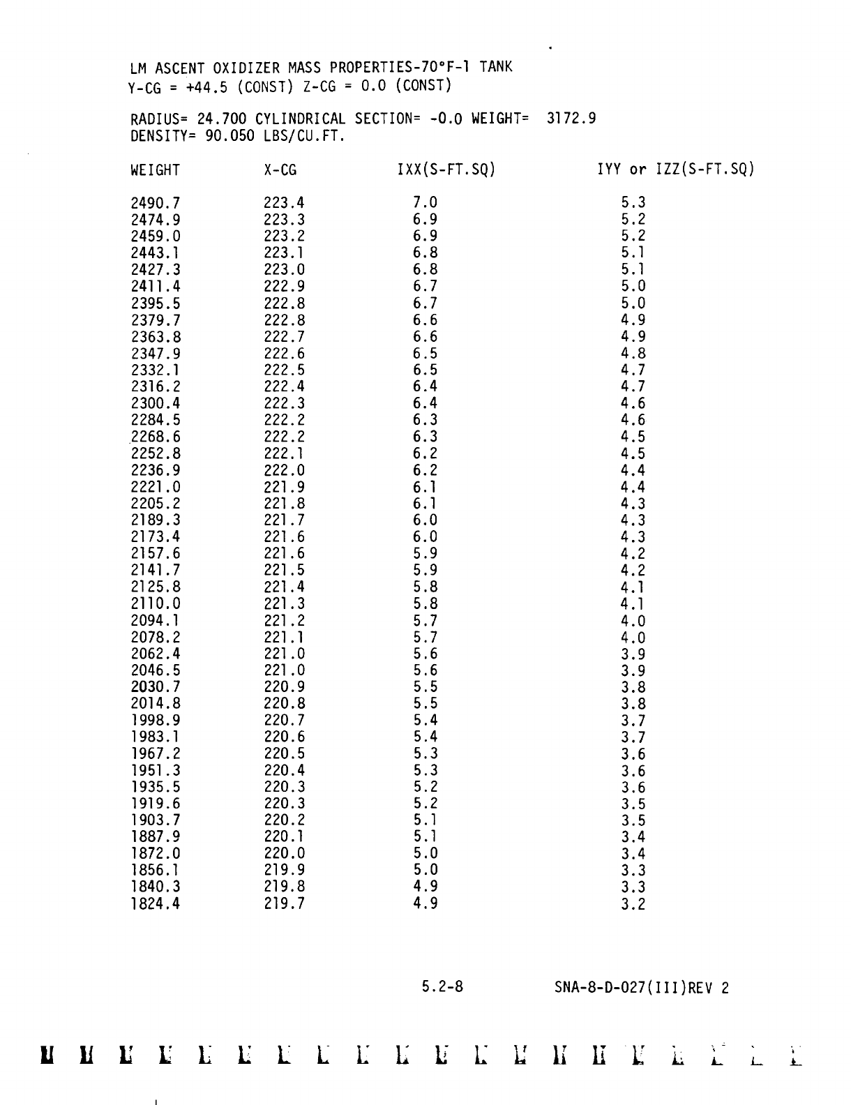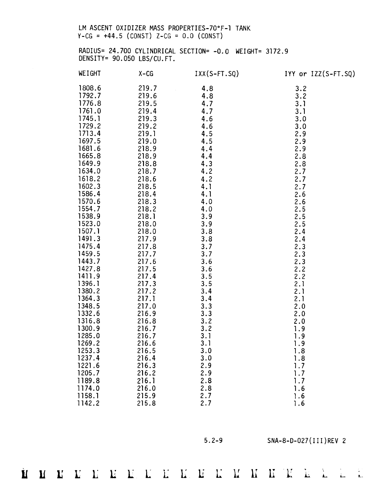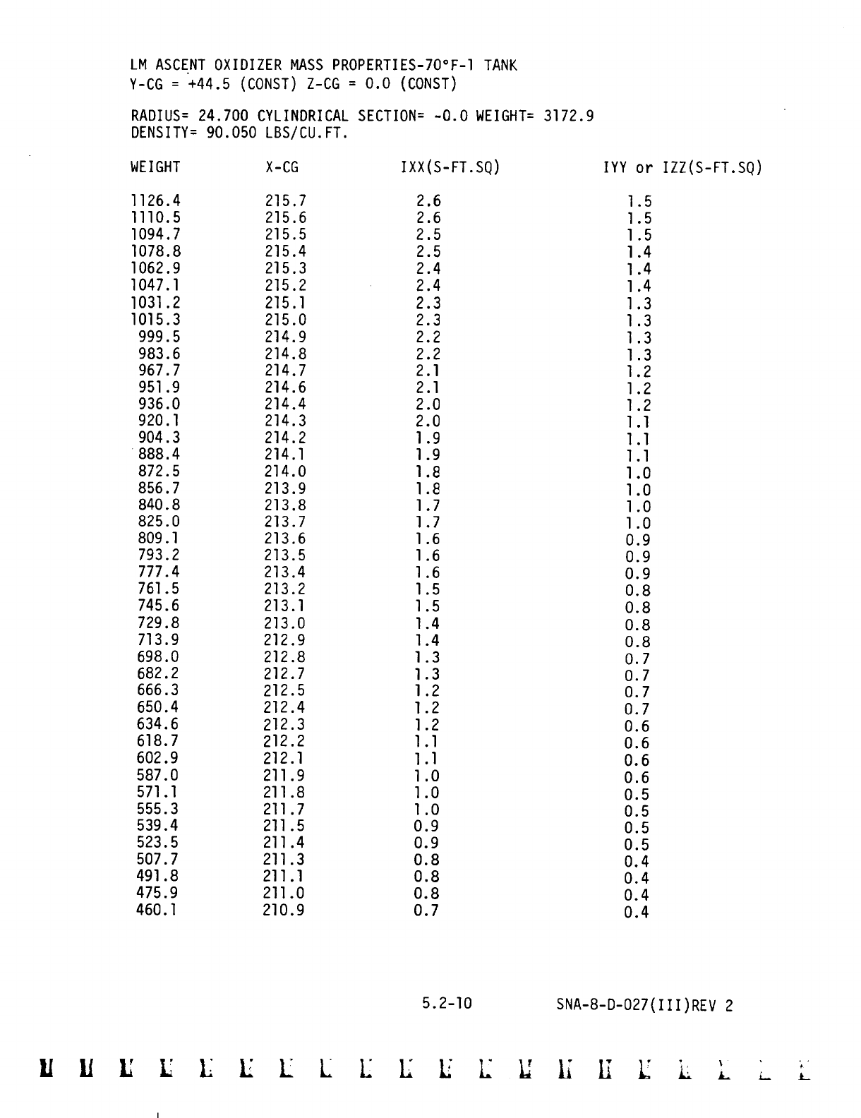 RCS -Tank #I 1.05 263.0 46.1 0.6
