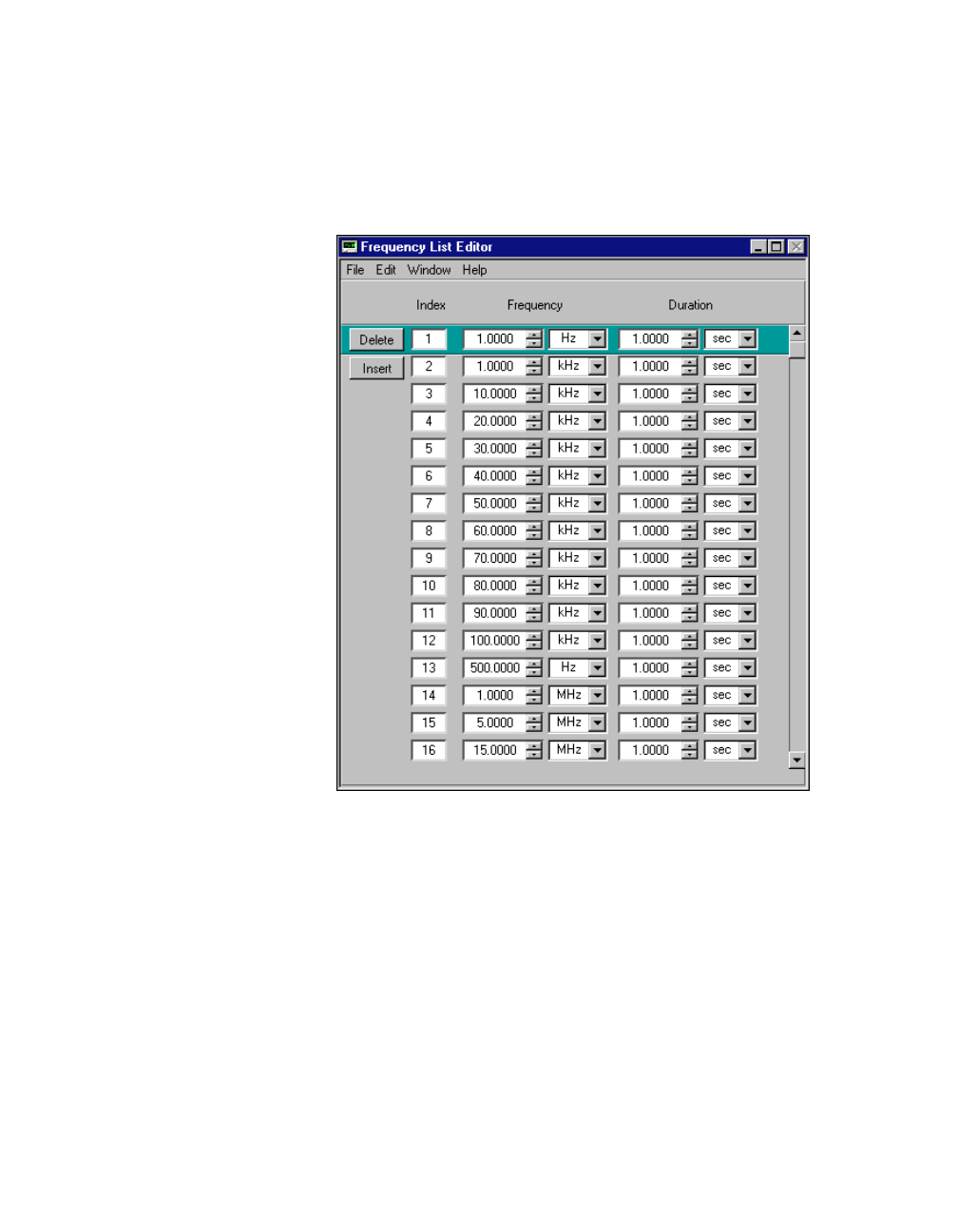 - Figure 1-10. VirtualBench-FG Frequency List Editor Dialog Box