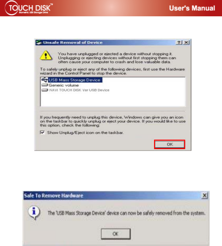 A. Please unplug Touch Disk and plug again. If your operating system is