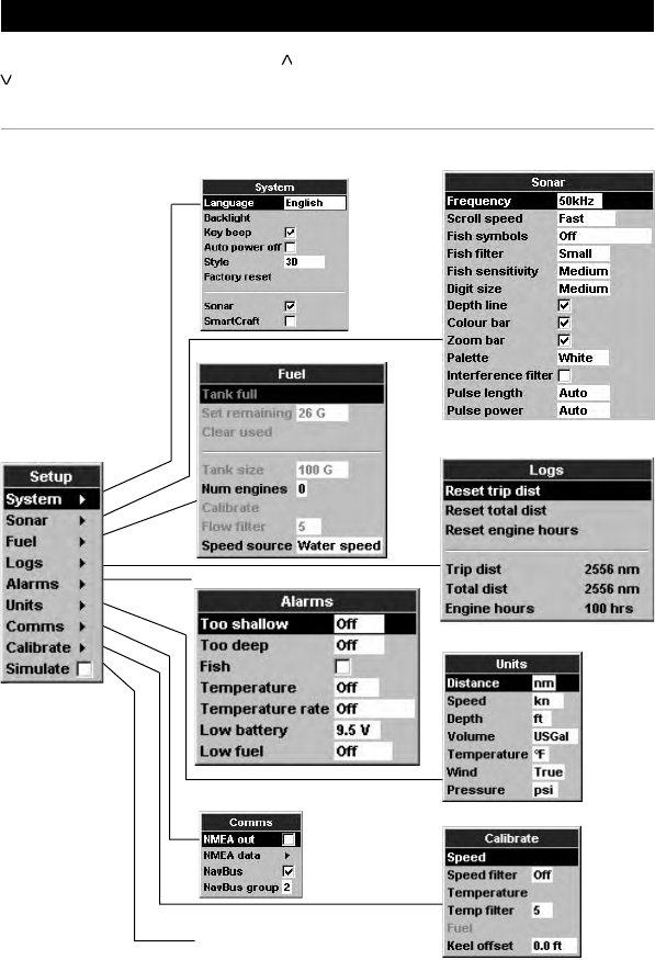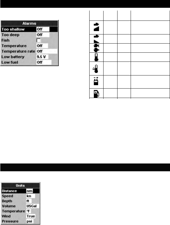 units of feet, °F (Fahrenheit), US gallons and knots. See section 3-6 Setup > Units, to change