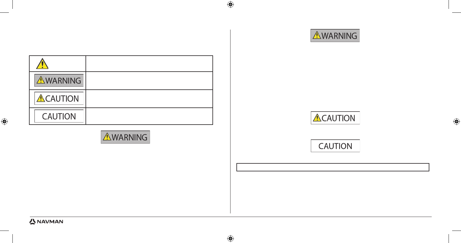 Failure to adhere to these warnings and cautions may lead to death, serious injury, or property damage. Navman disclaims