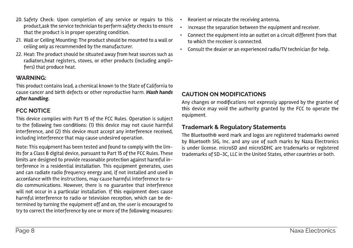 Caution: Any changes or modifications to this device not explicitly approved by manufacturer could void your authority to operate this equipment.