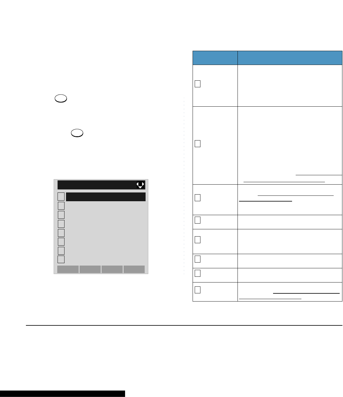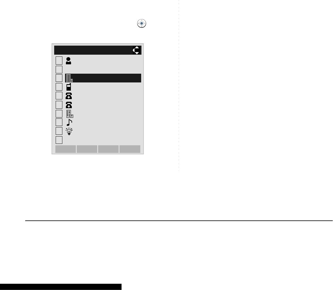 Directory To access Phonebook feature. For details, see PHONEBOOK in chapter
