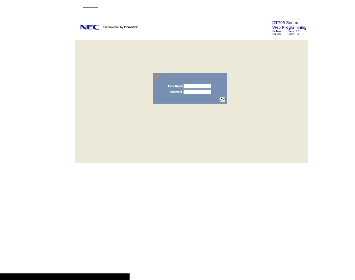 STEP 3: The Web Programming Login screen appears. Enter a user name (type “USER”) and a password (Note 1),