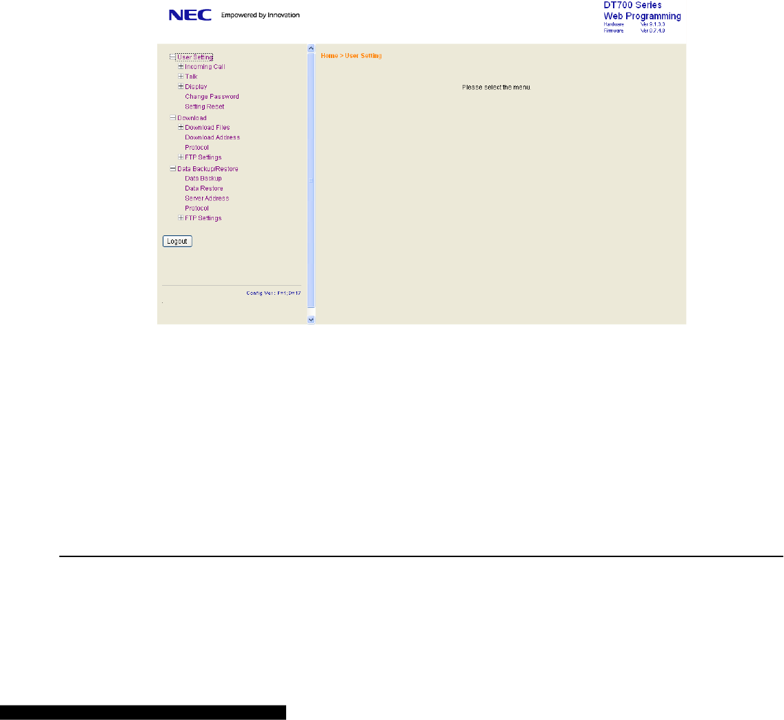 external call. Web Programming includes the same menu configuration as "Setting" of DT700 Series terminal. For