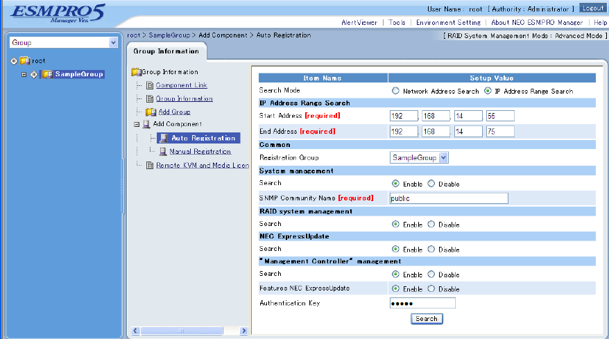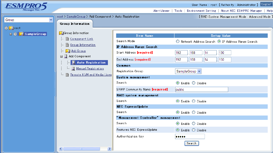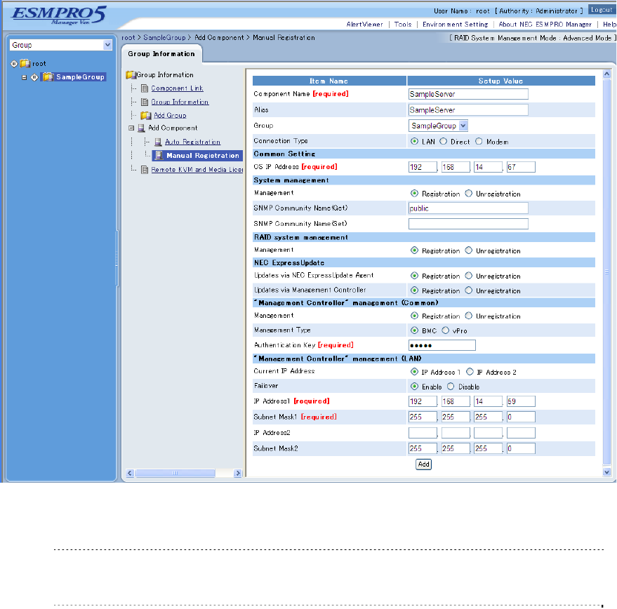 2.3 Register a managed component on NEC ESMPRO Manager (for LAN connection) ..................... 68