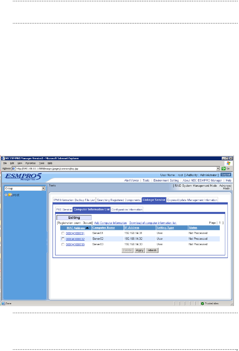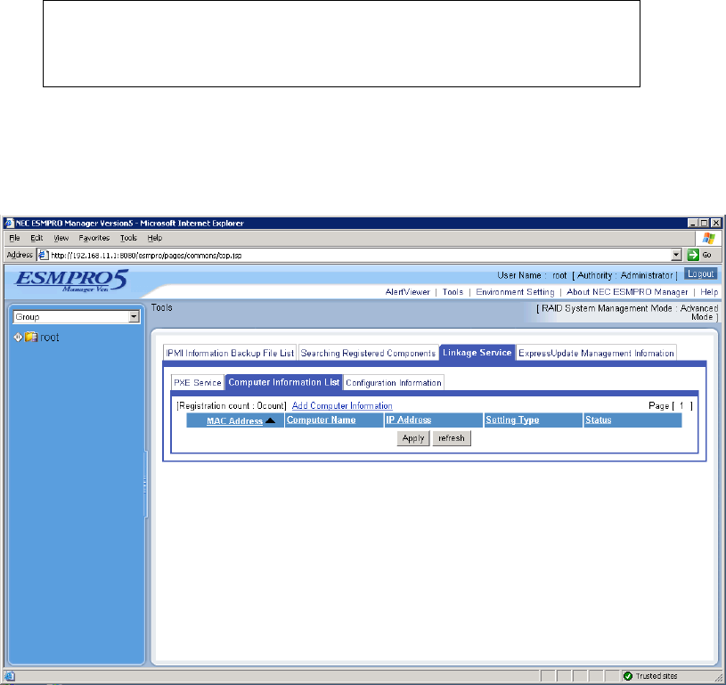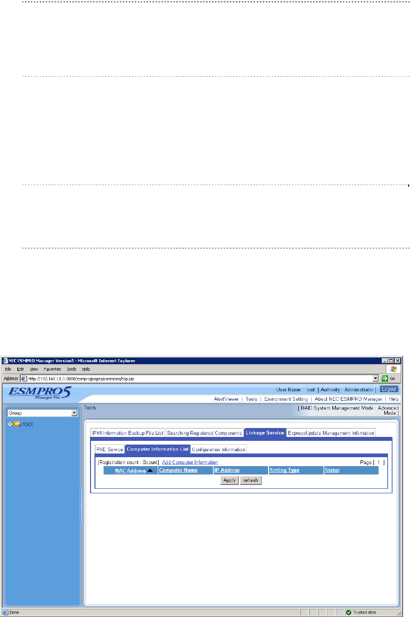 DianaScope Agent or NEC ESMPRO Manager PXE Service. Please refer to the user's guide that is