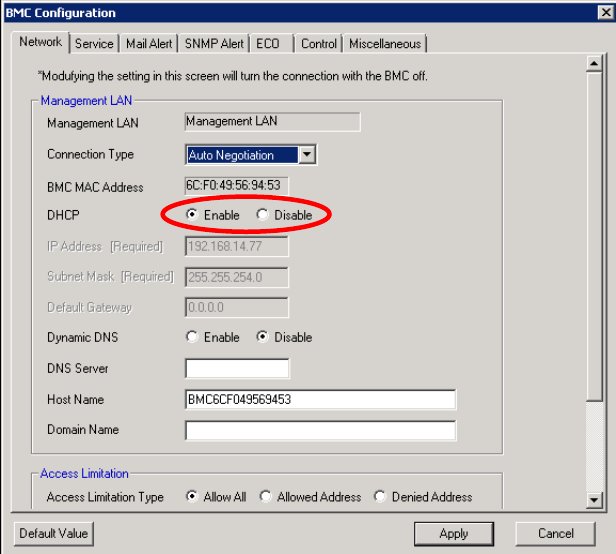 Management (for LAN connection).