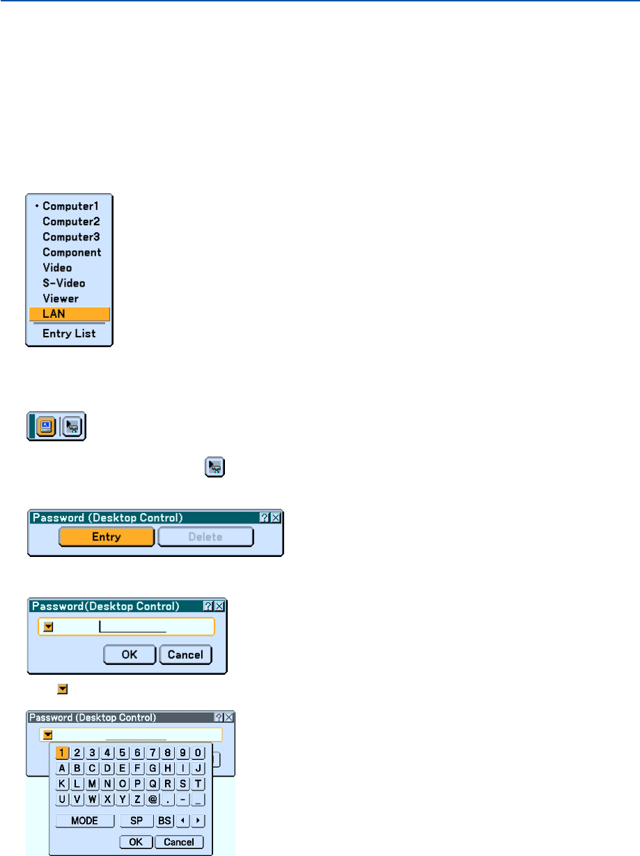 - (13) Using the Projector to Operate a Computer Connected on a Network (Desktop Control Utility 1.0)