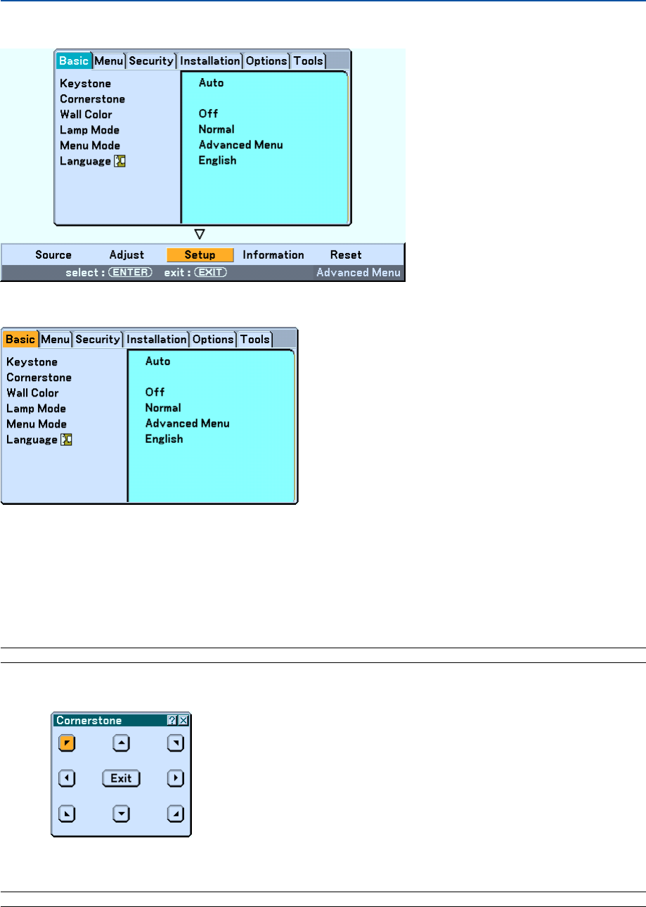 - (8) Correcting Horizontal and Vertical Keystone Distortion (Cornerstone)