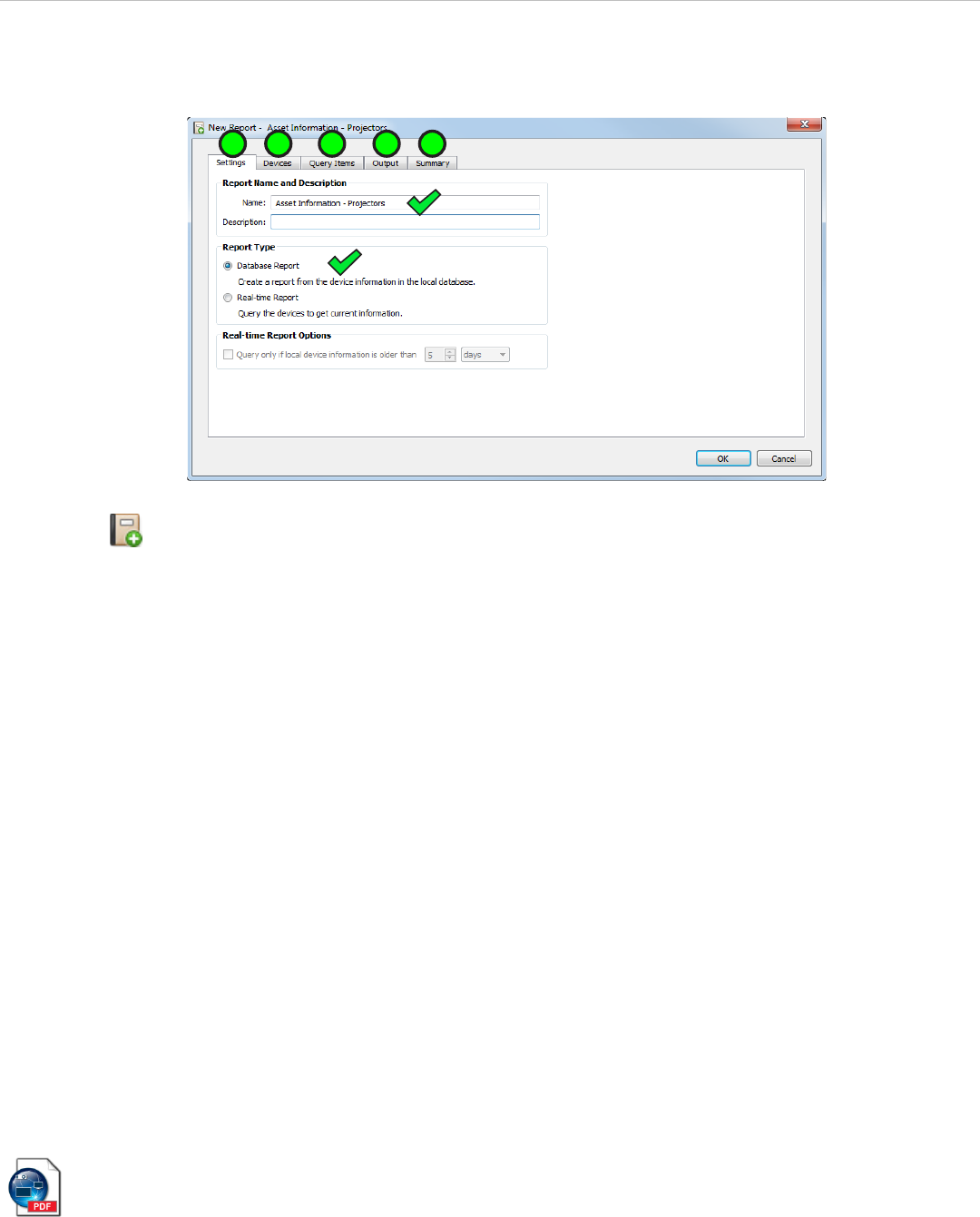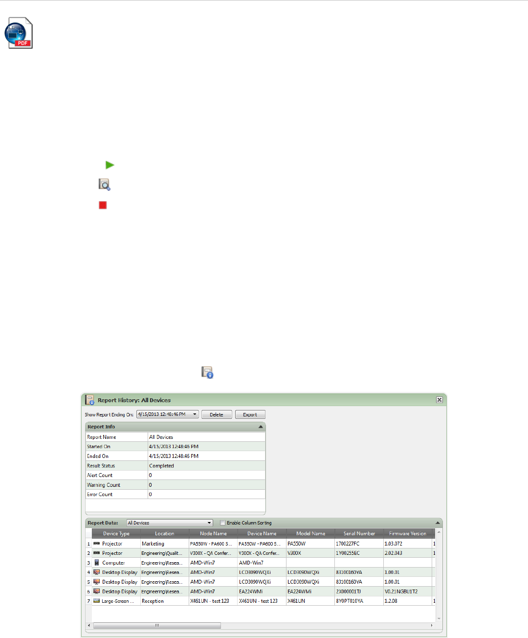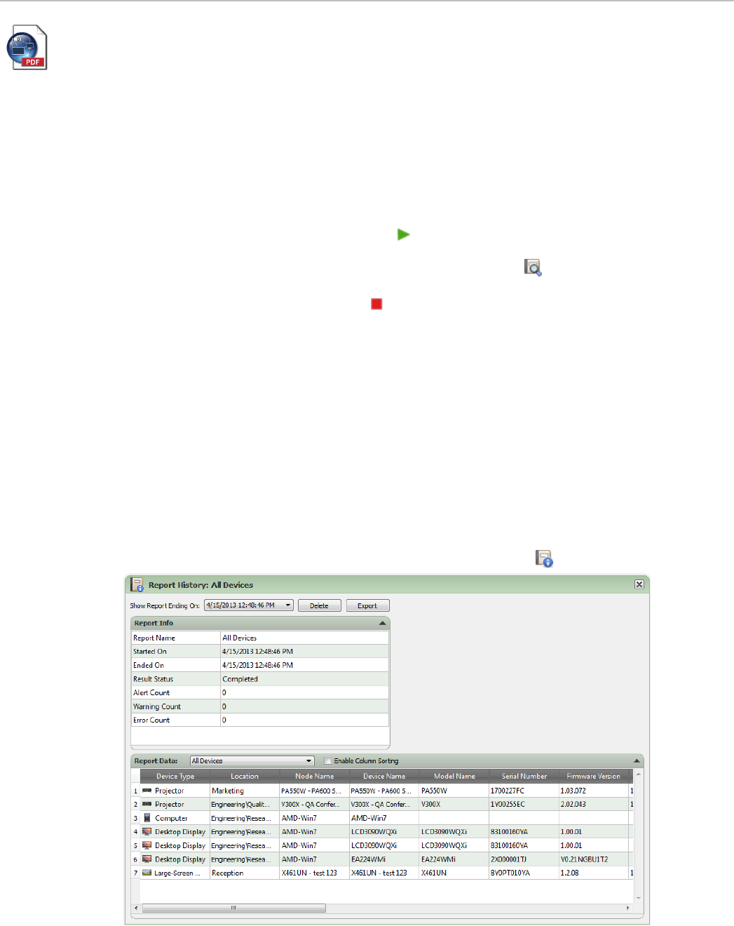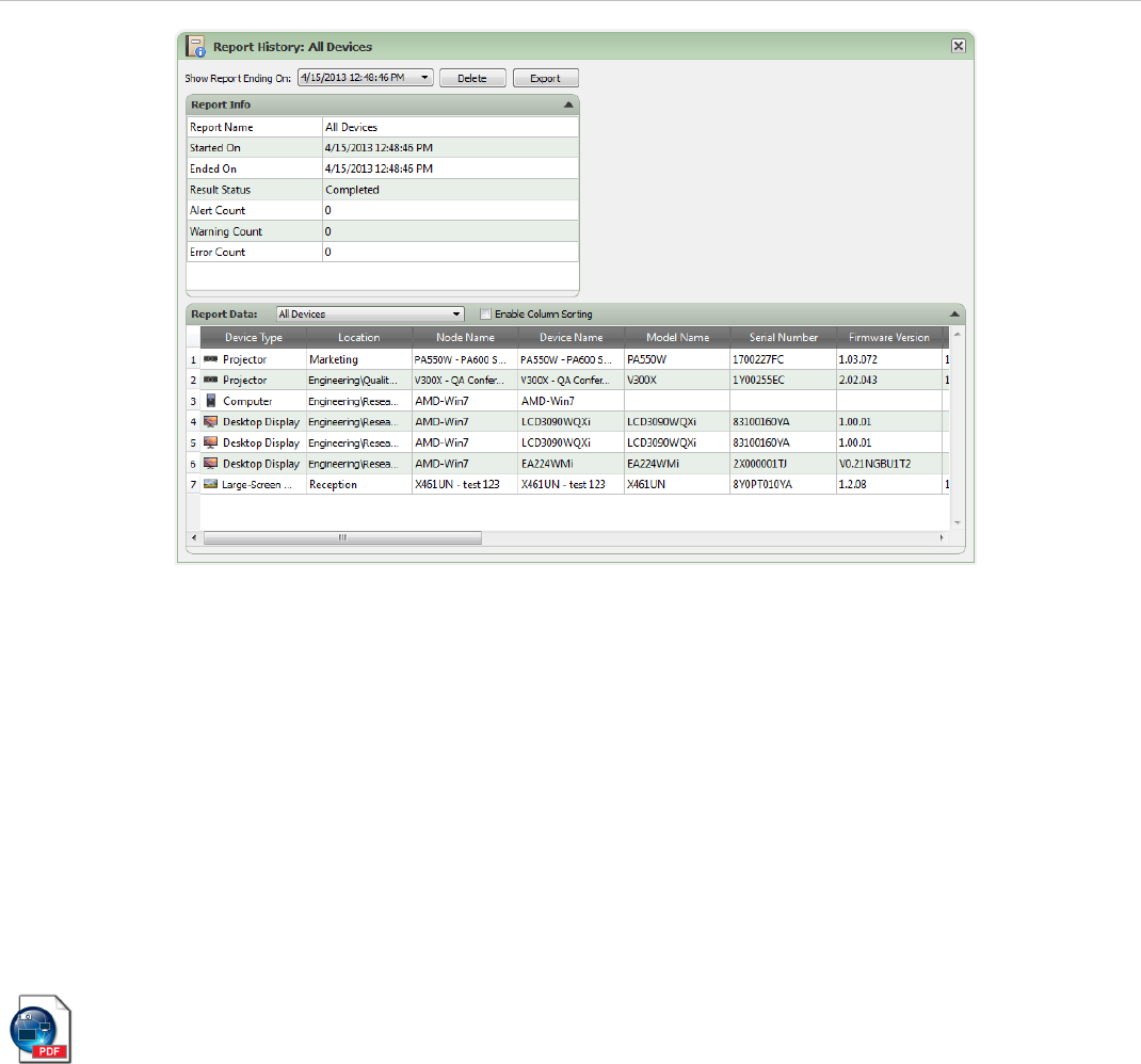 • Create detailed reports of device assets, operational states and control settings and export them to