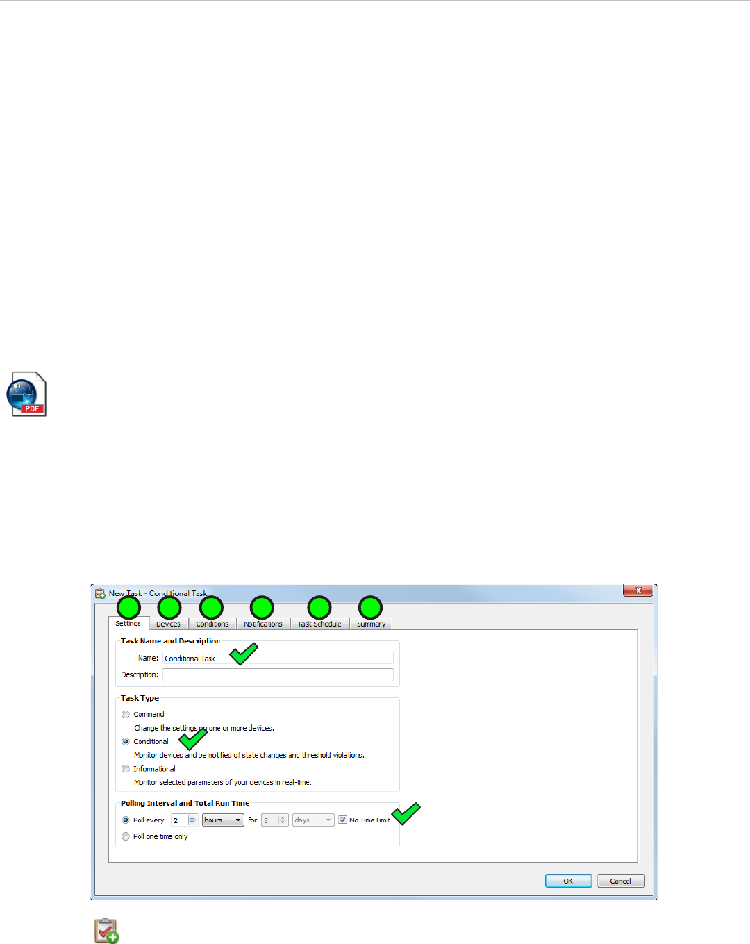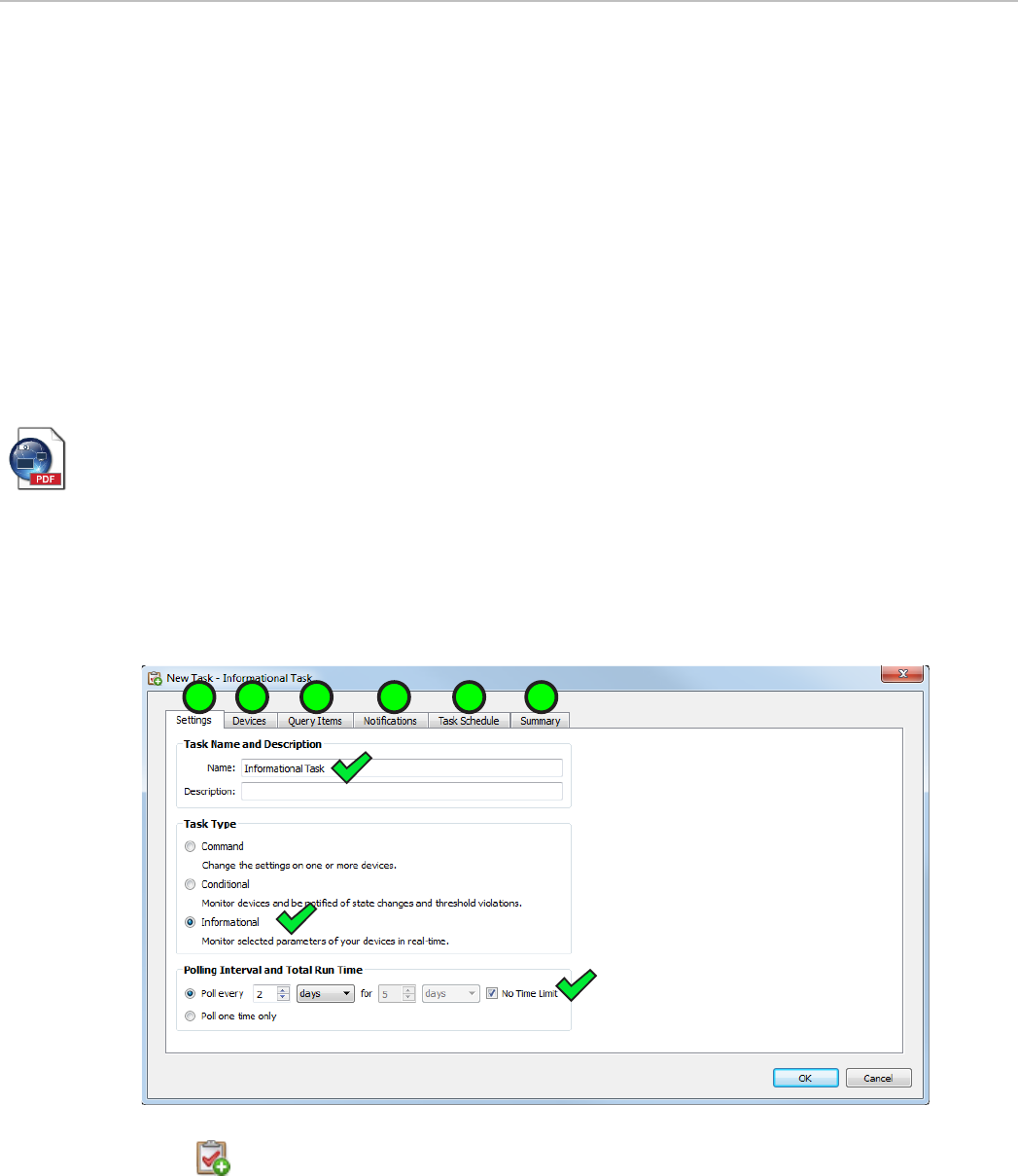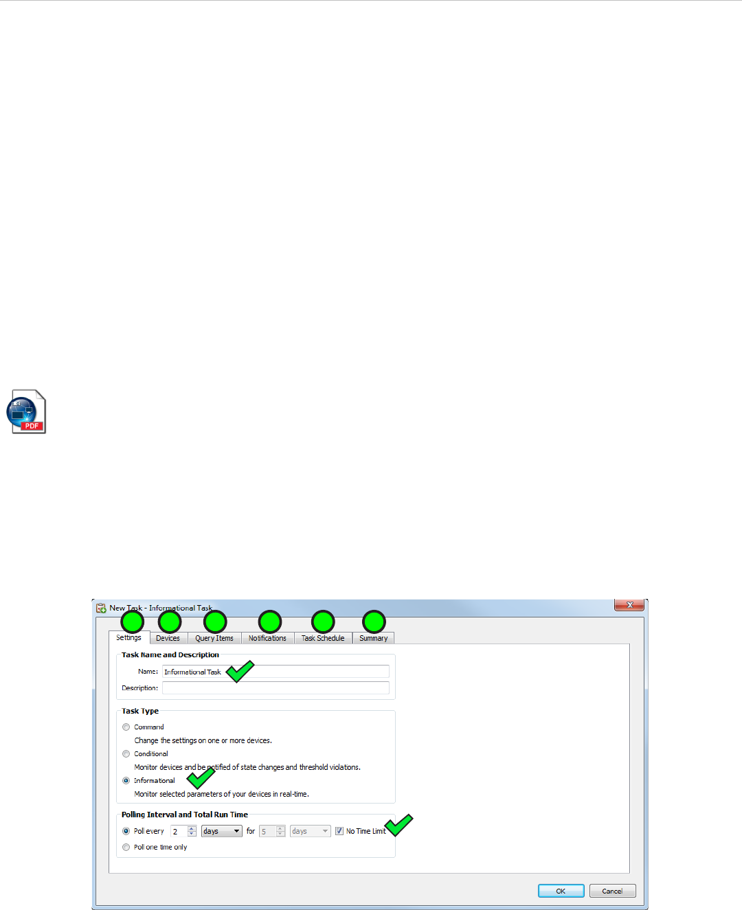 • Create detailed reports of device assets, operational states and control settings and export them to