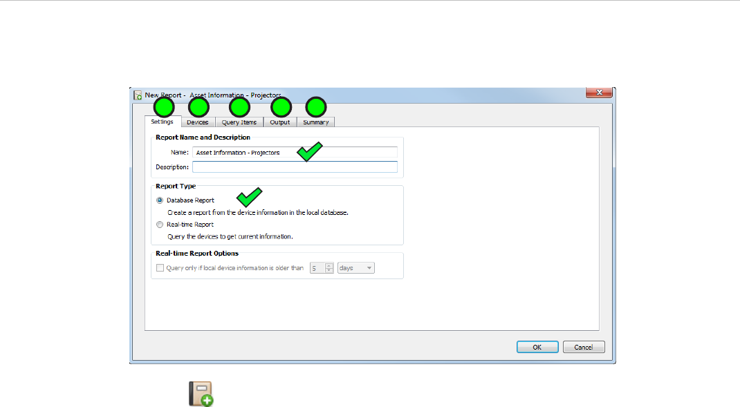 选项卡,选中您想包括在报告中的所有设备旁边的复选框。