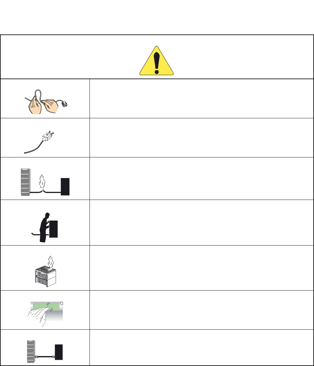 shock, or a failure if the system keeps operating. Turn off the power and confirm the