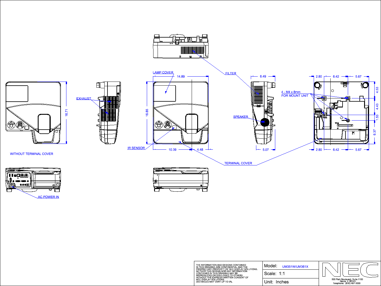Nec Np Um351W Mechanical Drawings