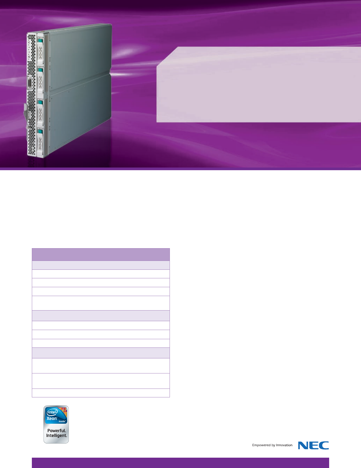 NEC blade server is designed for application compatibility and high availability in a choice of congurations. With very