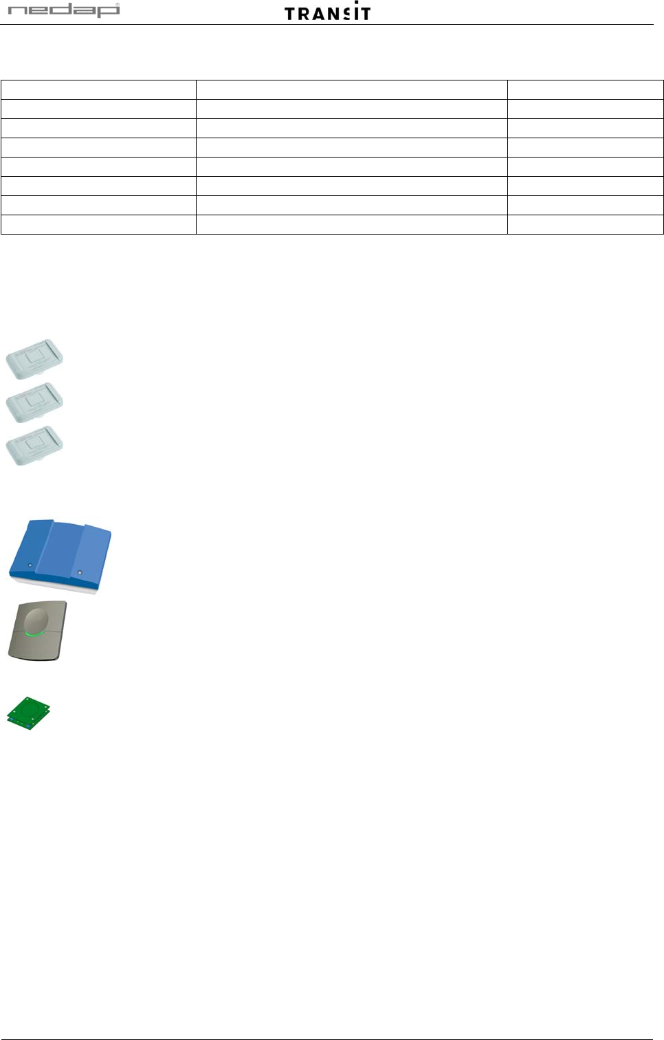 For more details about the NEDAP TRANSIT reader refer to the TRANSIT installation guide.