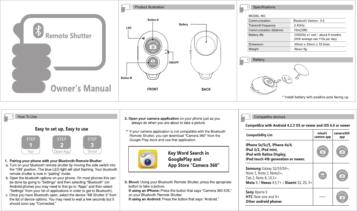Neewer Technology CAMERA360 Remote Shutter User Manual Bluetooth
