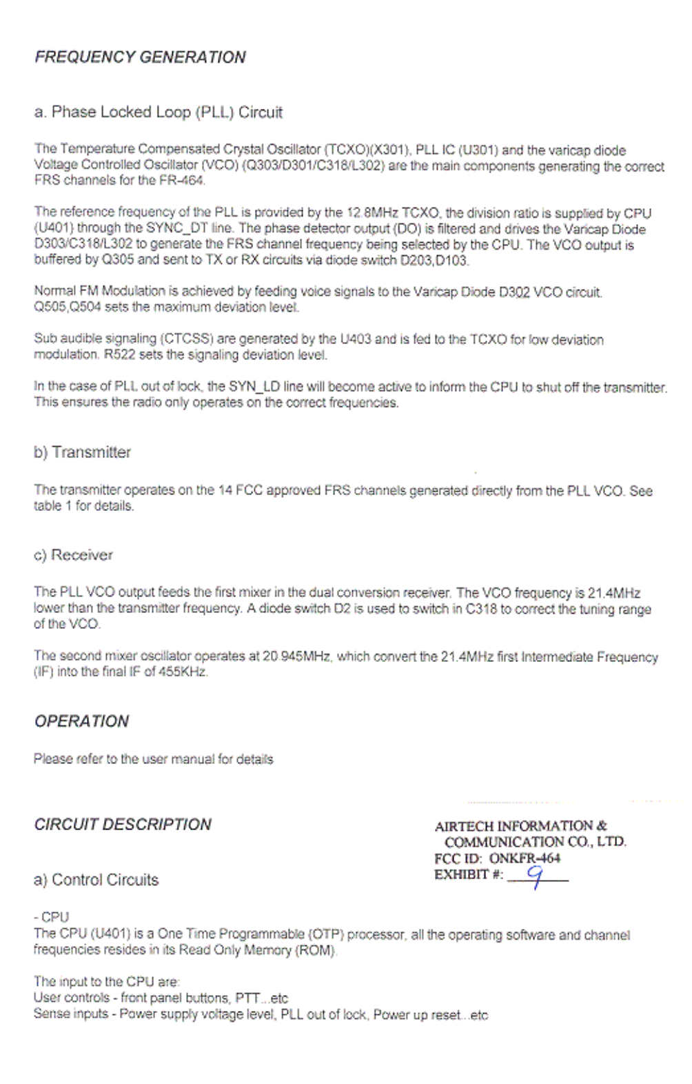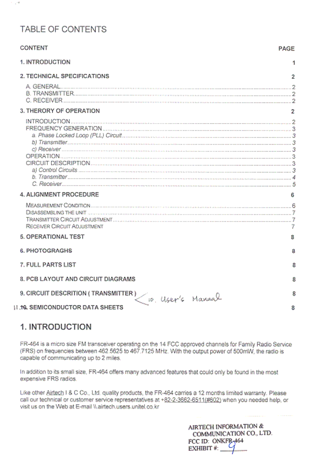 Nemo21 Information & Communications FRS Transceiver users manual