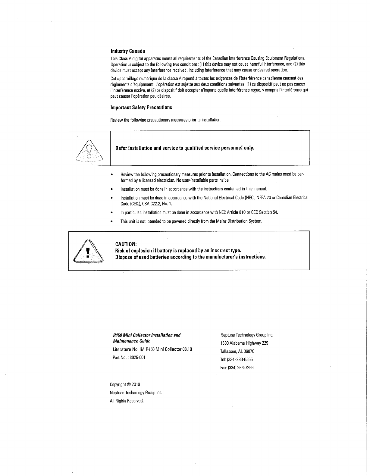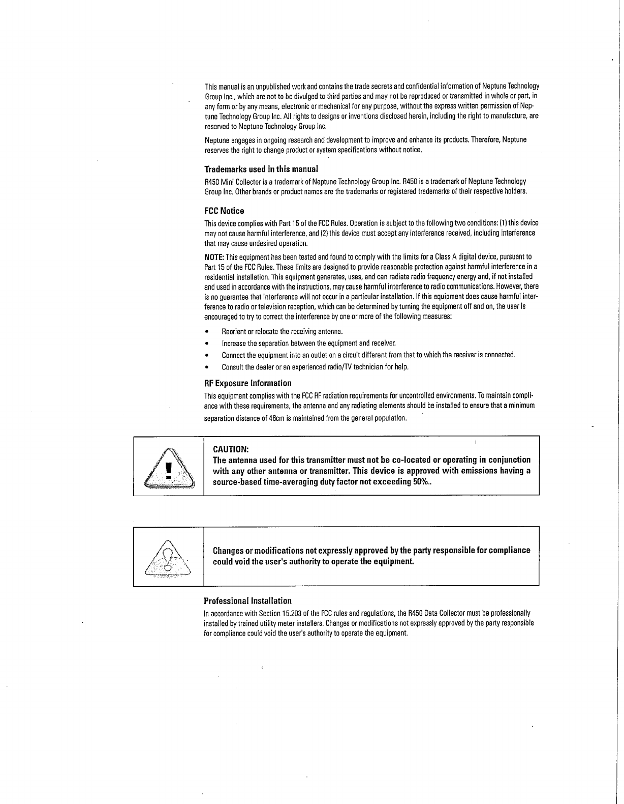 Neptune Technology Group Inc. R450 MINI COLLECTOR Users Manual