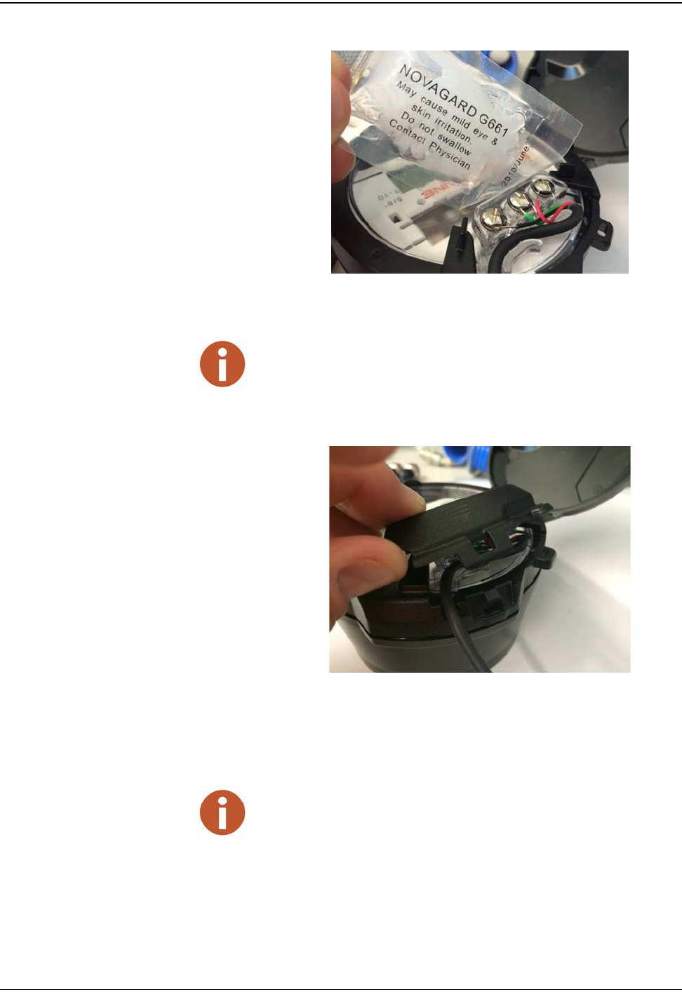 6 For rear cable entry, store excess wire and Scotchloks in the hollow