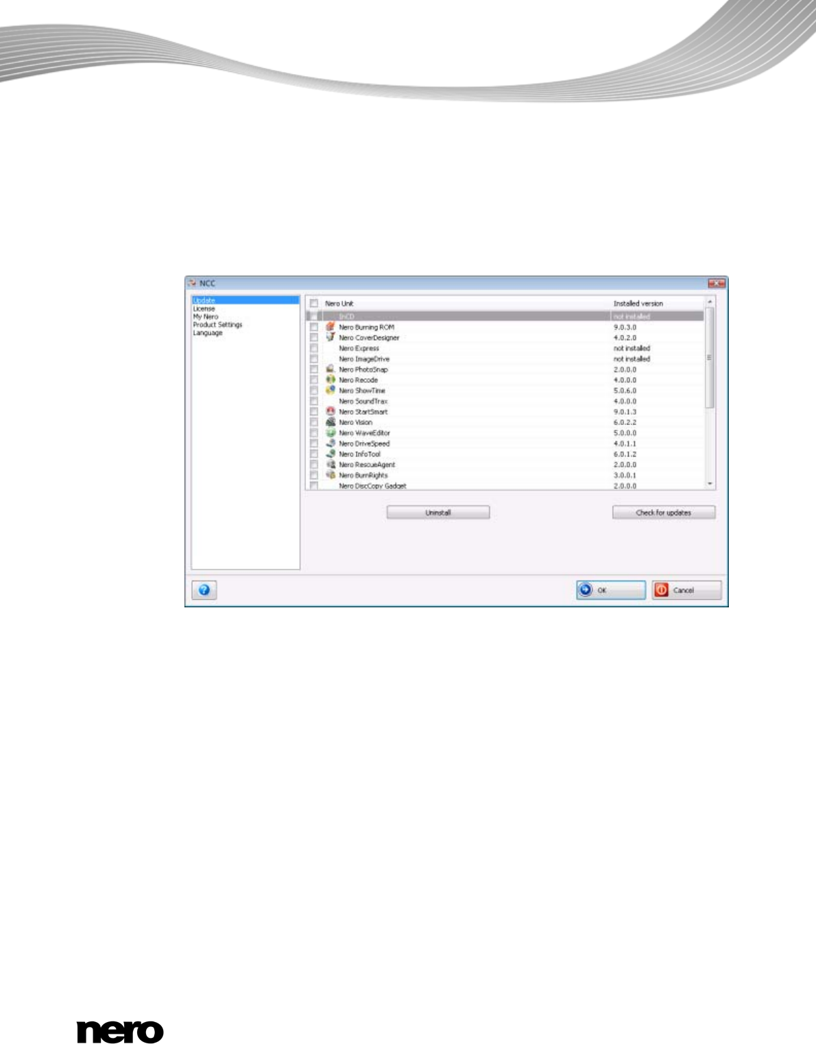 With Nero ControlCenter you can update your Nero products, select the desired language,