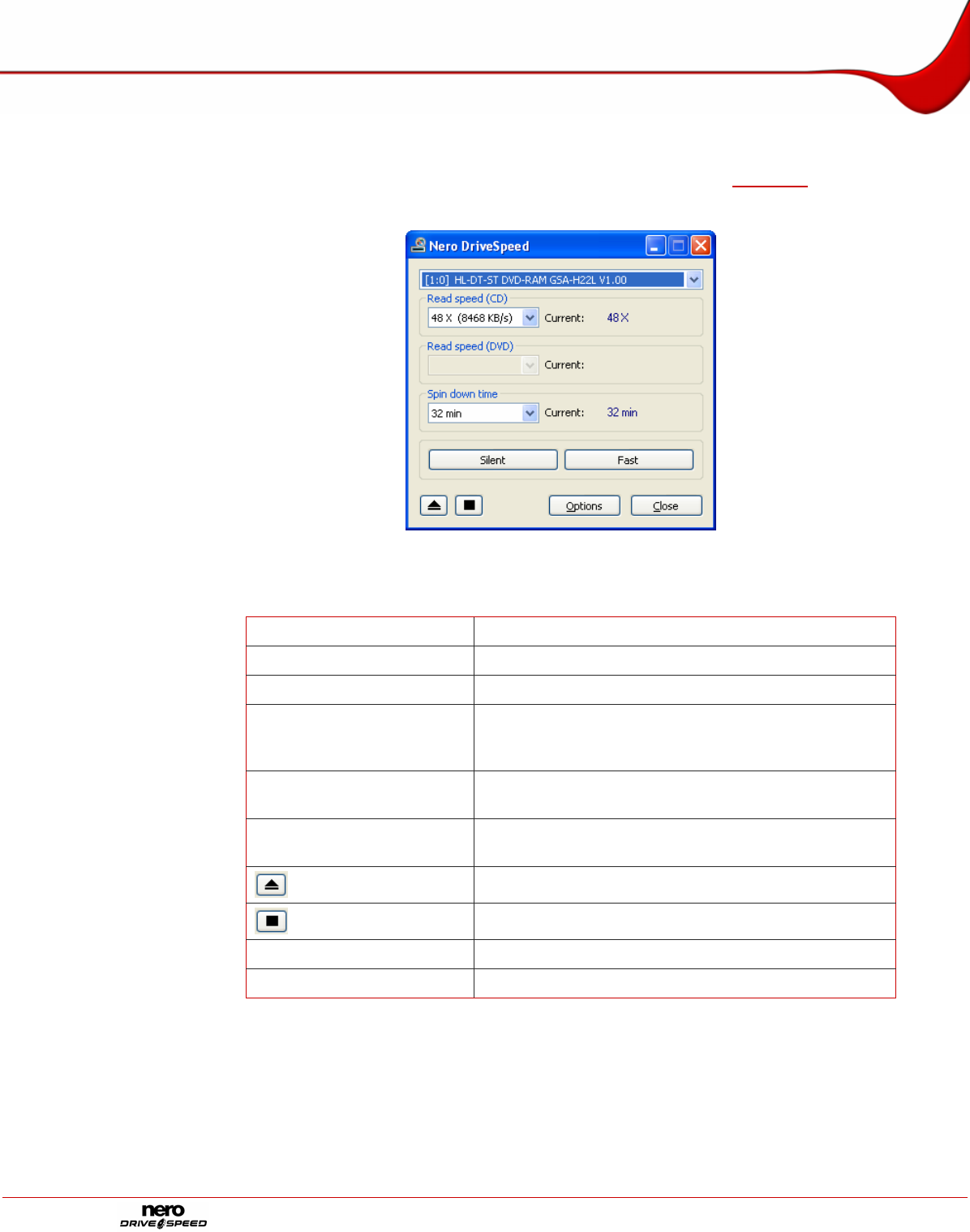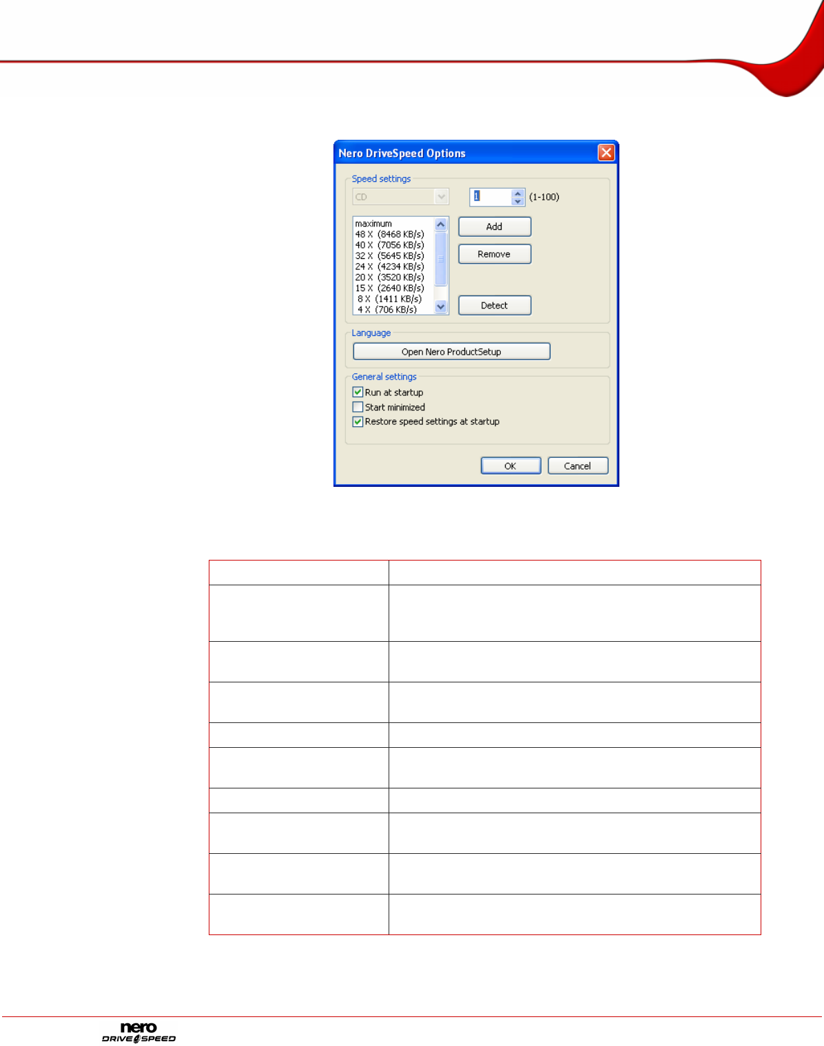 The following setting options are available to you in the Nero DriveSpeed Options window: