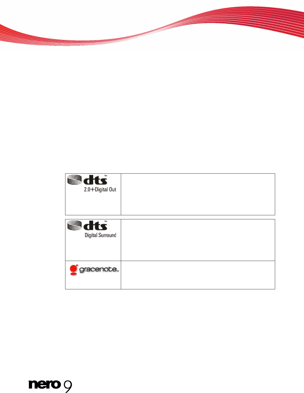 Some Nero Suite applications require technologies developed by third-party manufacturers, some of which are contained in the Nero