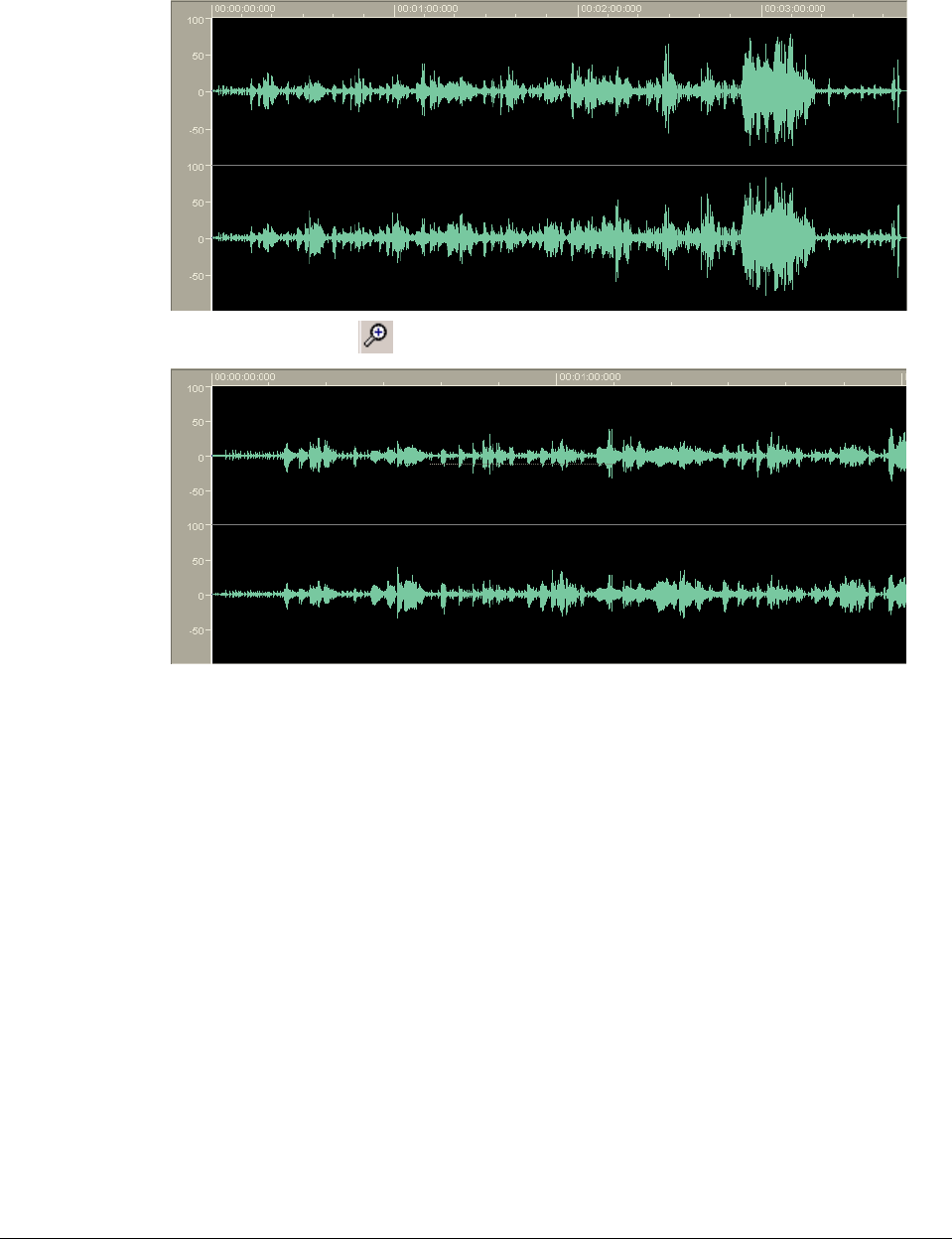 The next picture shows the audio file changed using noise reduction.