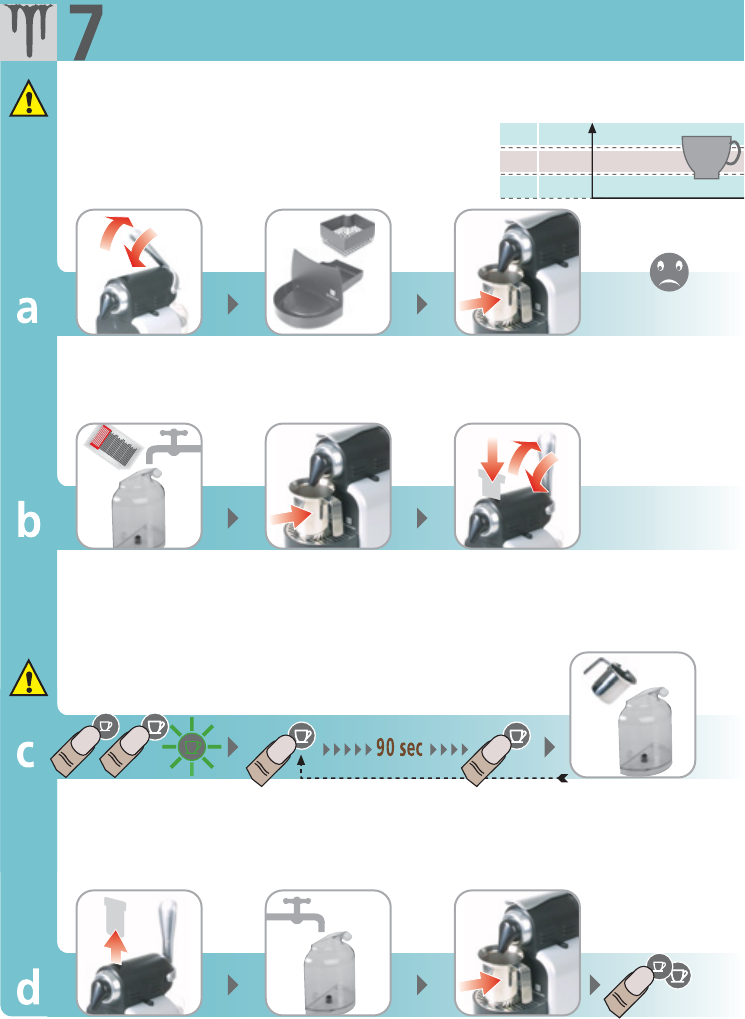 b) Descaling: do not open the closing handle during the descaling process.