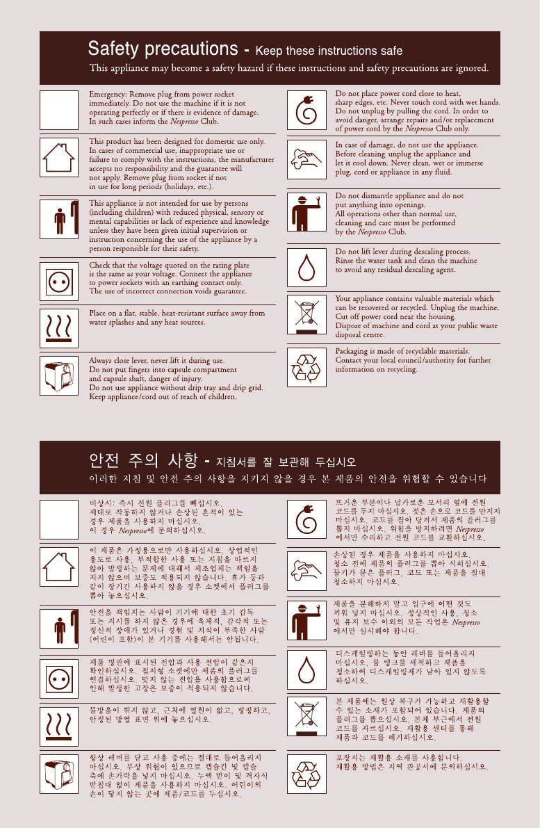 Nespresso warrants this product against defects in materials