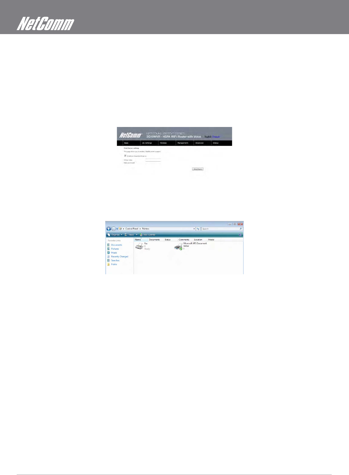 Enable Print Server from Web User Interface.