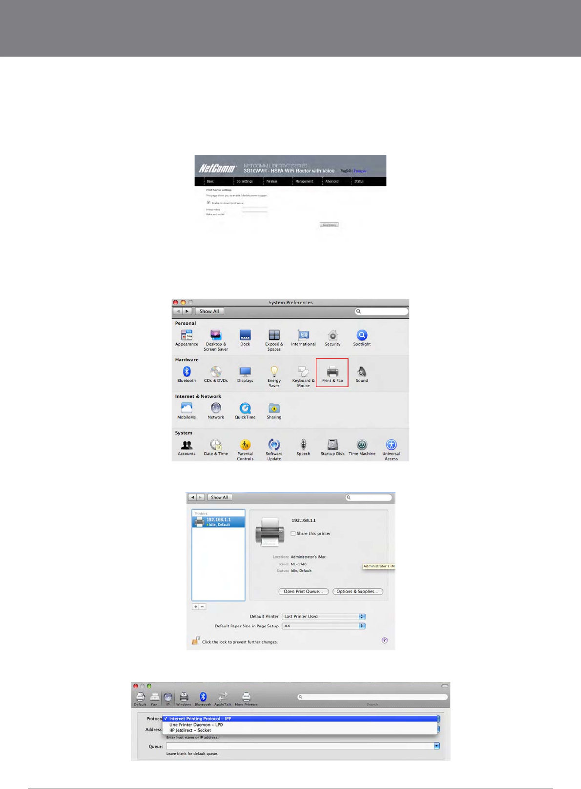 With your Printer driver installed, please add your printer from the Print &Fax menu.