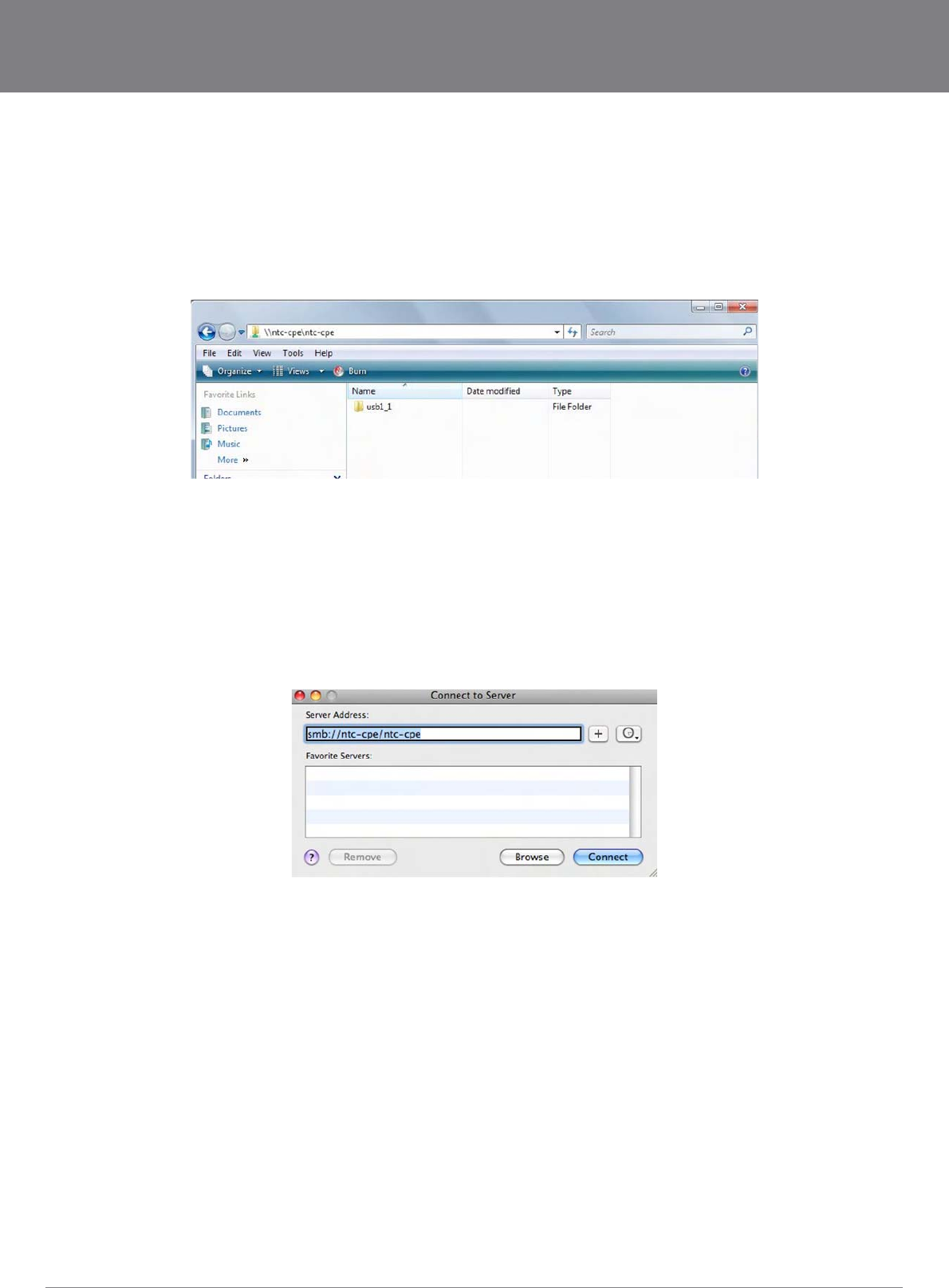 Type in the address \\ “NetbiosName”\ “DirectoryName” \ (eg \\ntc-cpe\ntc-cpe)