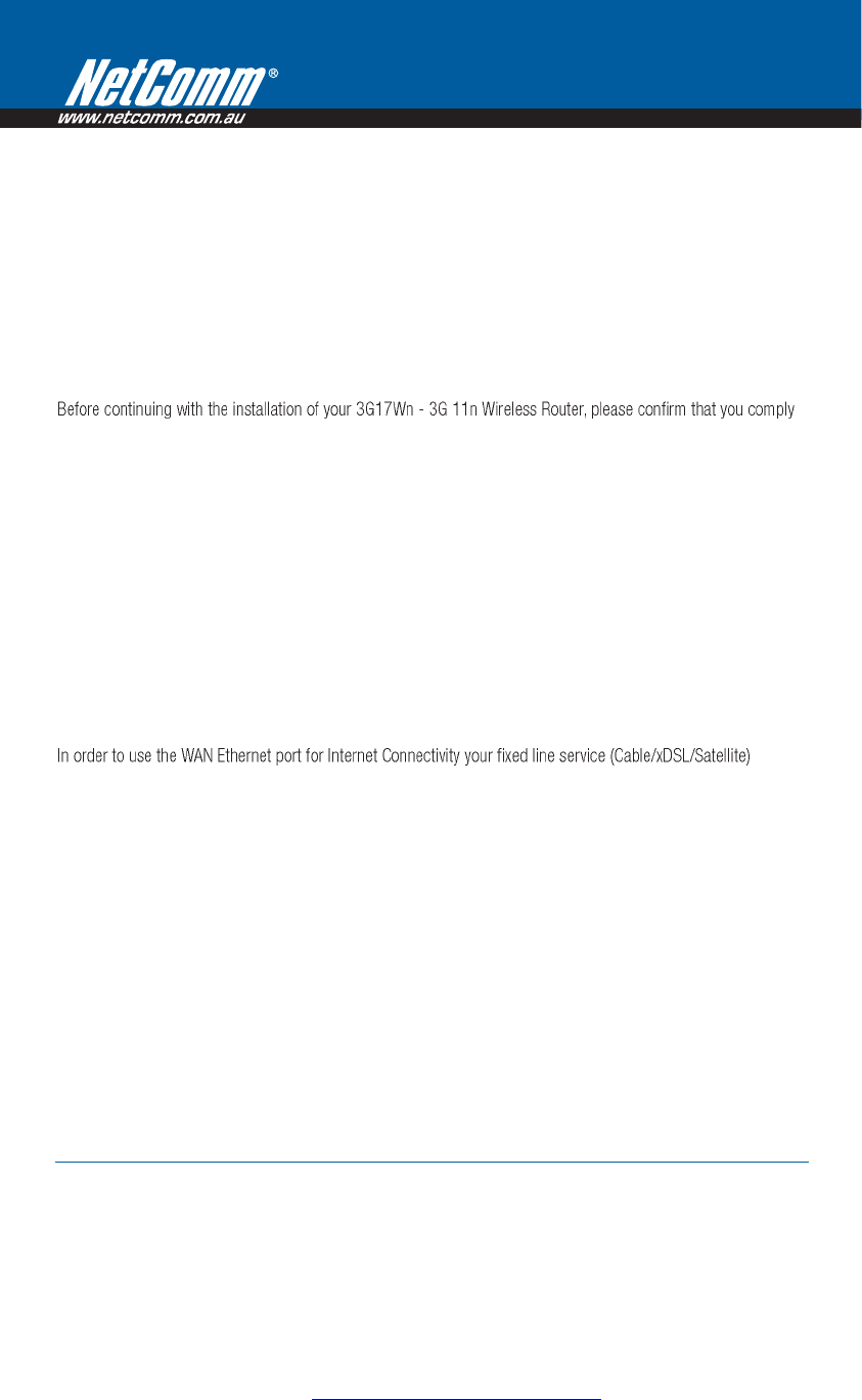 NetComm Wireless Limited Wireless 3G Router UserMan XIA 3G17Wn
