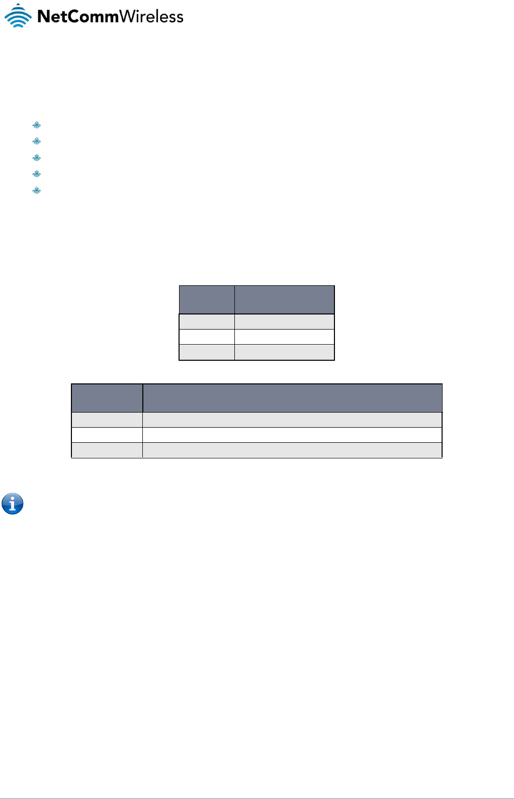The information contained herein is proprietary to NetComm Wireless. No part of this document may be translated, transcribed,