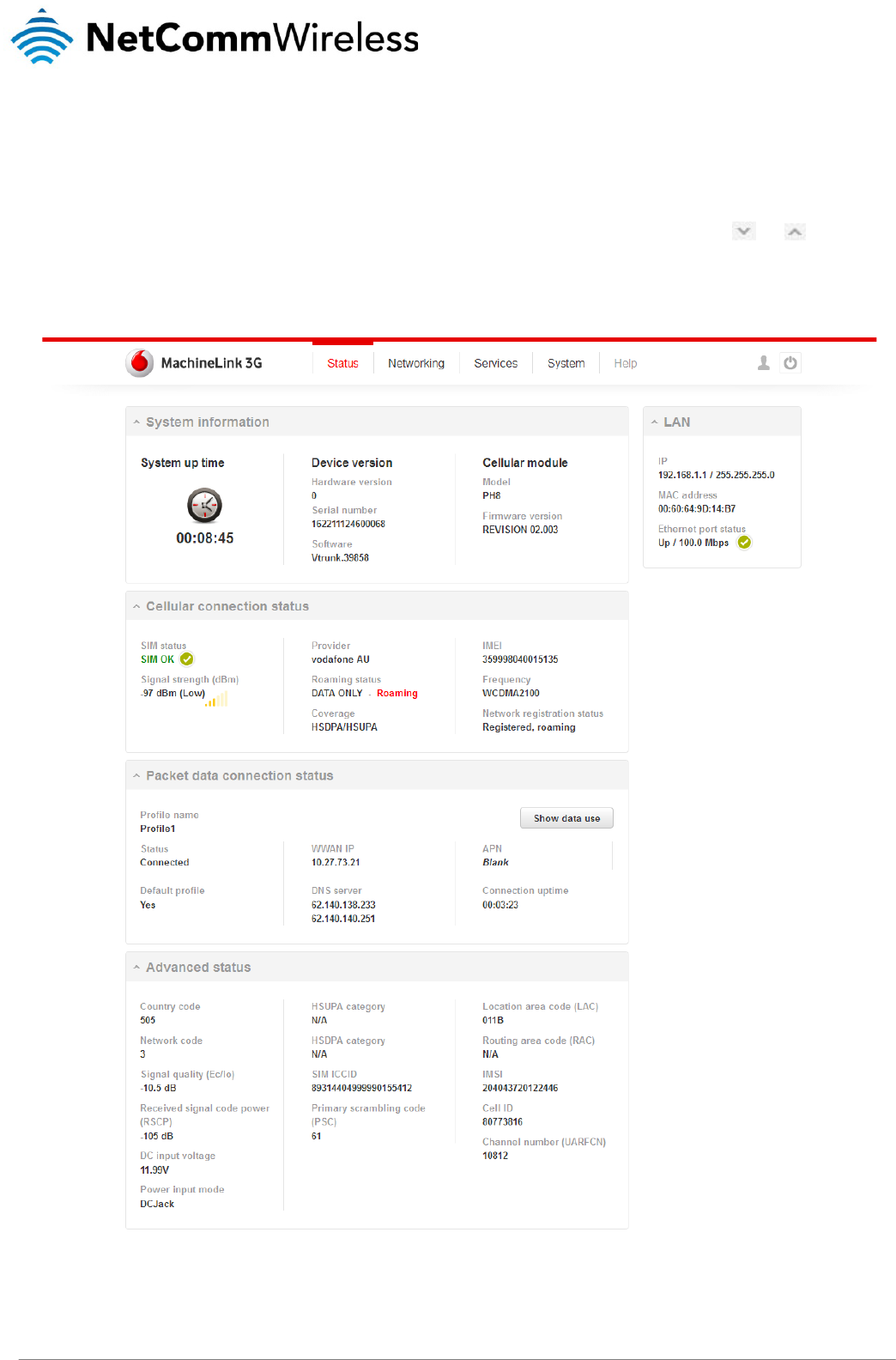 NetComm Wireless NWL10 VODAFONE MACHINELINK 3G User Manual
